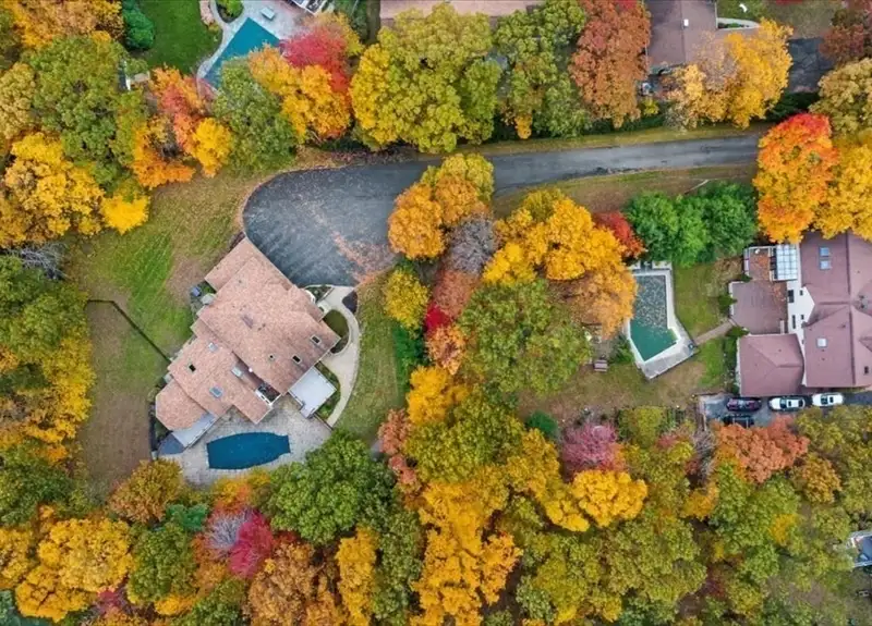 - Private estate-style setting with mature trees