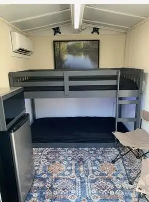 The roof on the guest house was recently replaced in December 2024, and the roof on the main house was replaced in approximately 2020. Both roofs were installed by Professional Roofing out of Bluffton, and are under warranty. There's a graveled floor firepit area complete with picnic tables and Adirondack Chairs. A fenced garden area with raised boxes is located near the