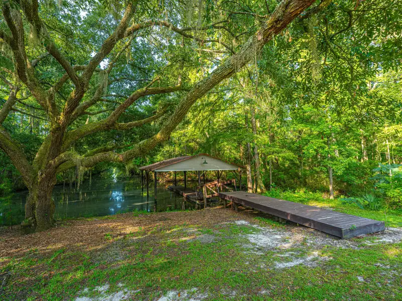 property serves as a premier habitat for aquatic birds year-round, and as a resting place for migratory ducks . Although Public Landing has a boat launching ramp, the present owner has been launching his Jon boat from the graveled road leading to his private boat house and nearby dock. A second dock in River Oaks is located on the canal down a private RTV trail which terminates into a peninsula ideal for a sunset cocktail, or wine and cheese appetizer at sunset. The Combahee and exterior River gate are visible from the second dock. Two enclosed elevated