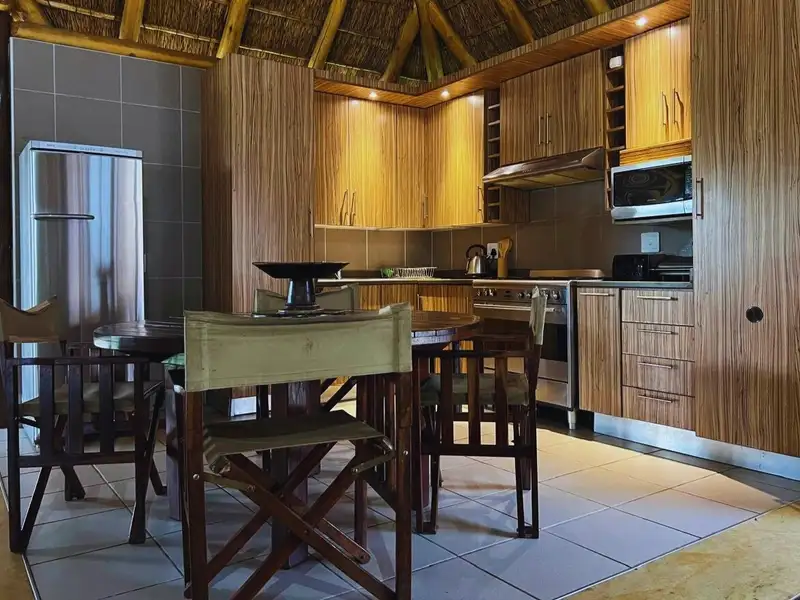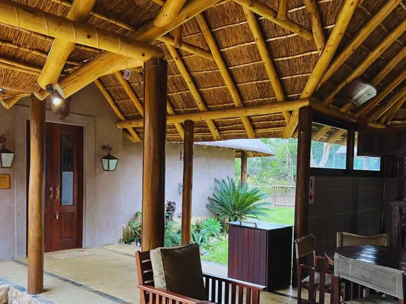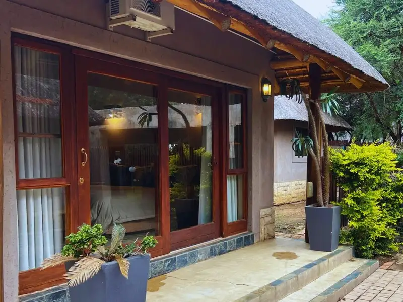 Each chalet has its own private covered patio, offering a quiet space to enjoy the bushveld ambiance