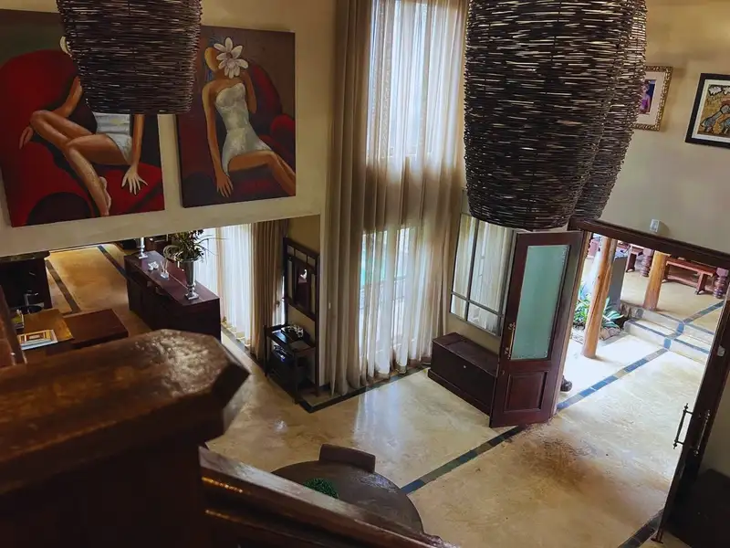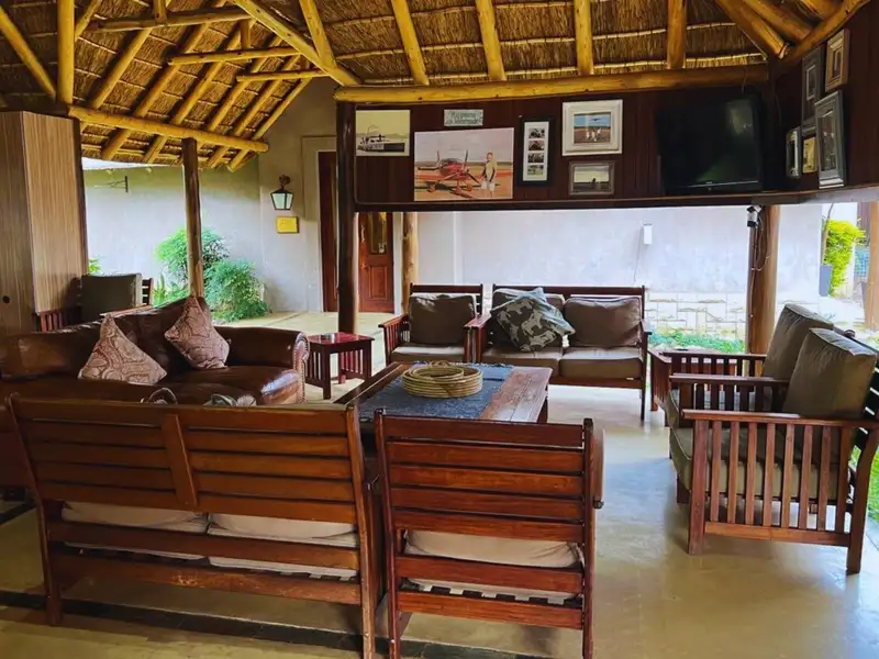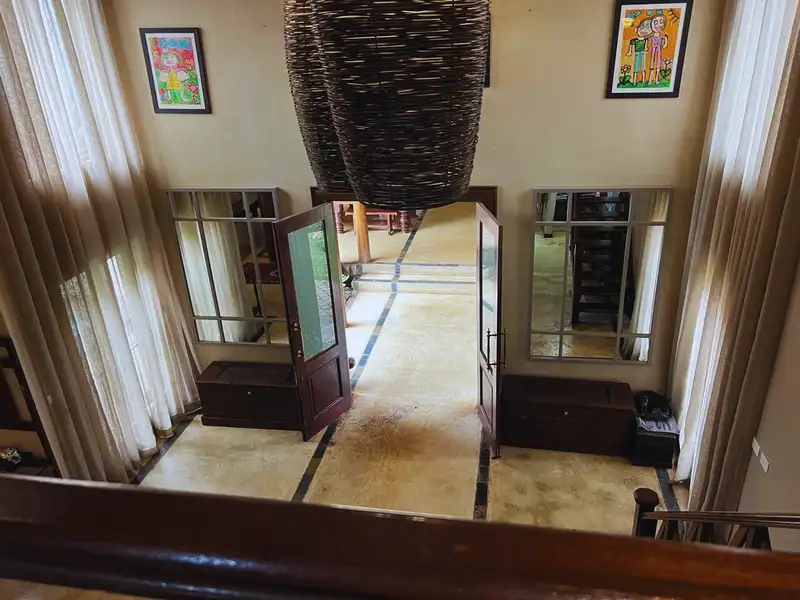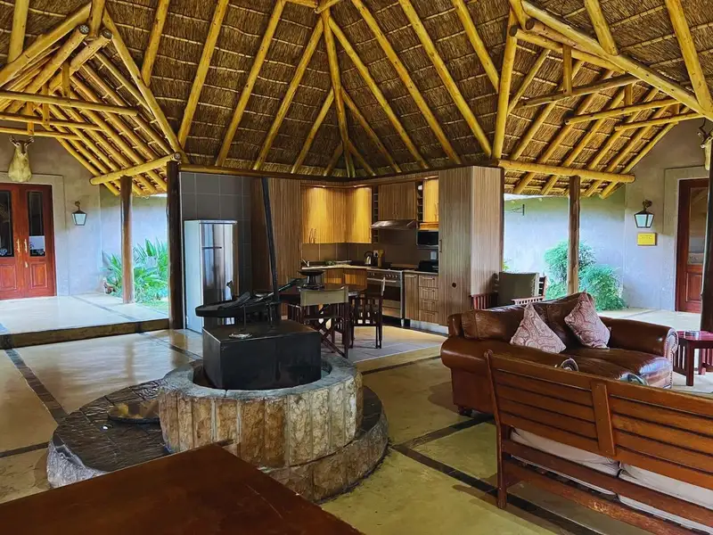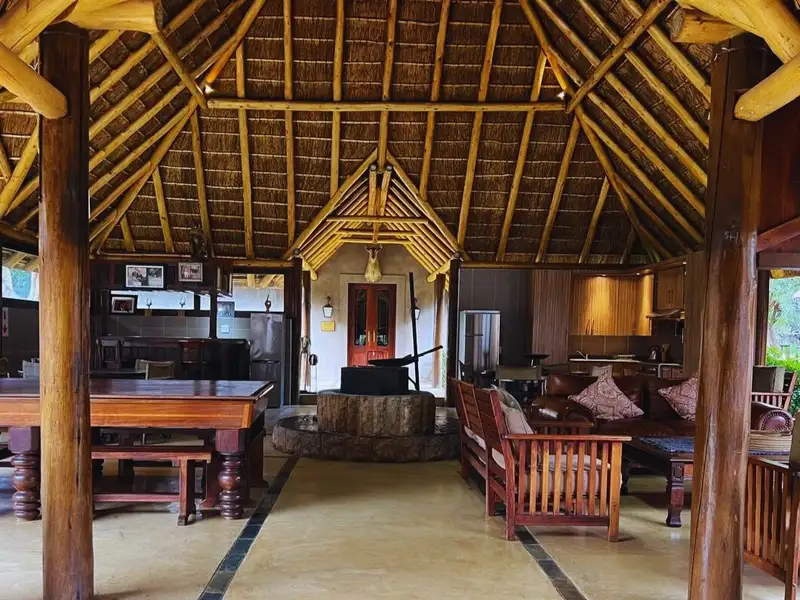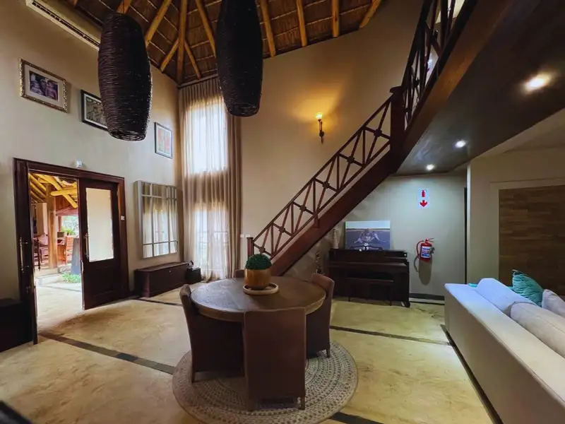 Positioned on the 18th fairway, the main house embraces the charm of thatch roofing and the comfort of modern luxury, blending beautifully with the natural environment.
