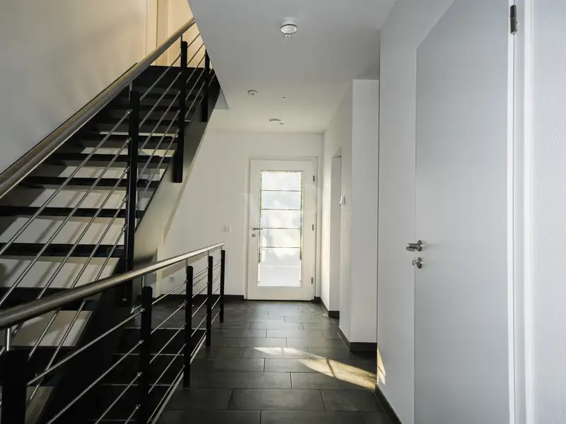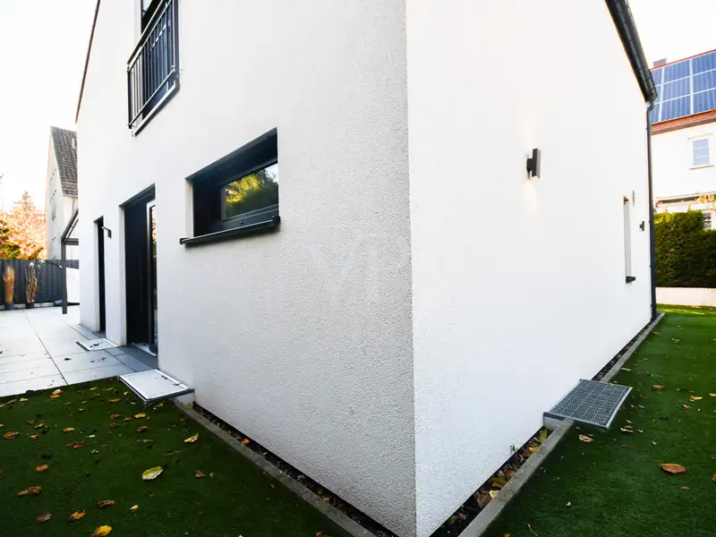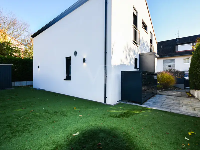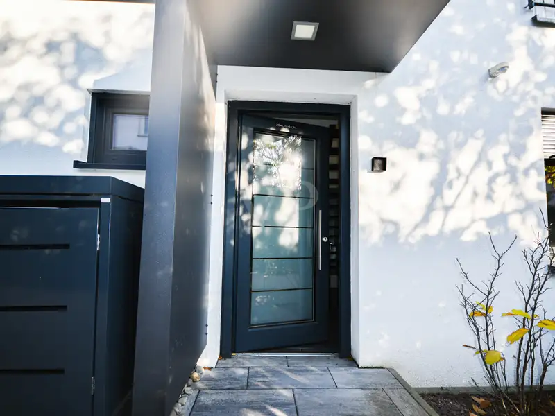 This modern Bien-Zenker detached house with a living space of approx. 129.86 m² was completed in 2018 and is situated on a generous plot of approx. 412 m². Thanks to its high-quality fittings, its as-new condition and its well thought-out room layout, the property is ideal for couples or small families who value high-quality construction and innovative technology.