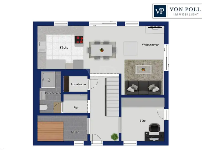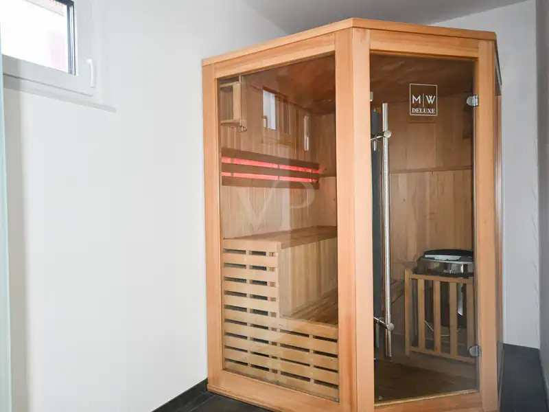 The modern fitted kitchen is equipped with all the necessary electrical appliances and offers plenty of storage space as well as optimal work surfaces. There is also an additional shower room and a sauna on the first floor, perfect for relaxing after a long day at work.
