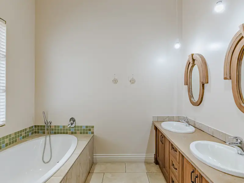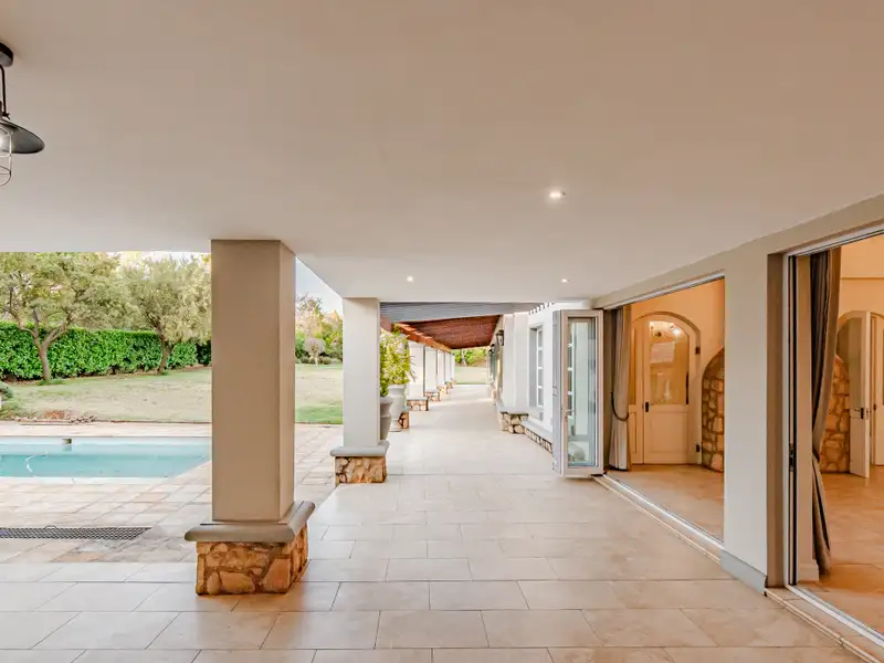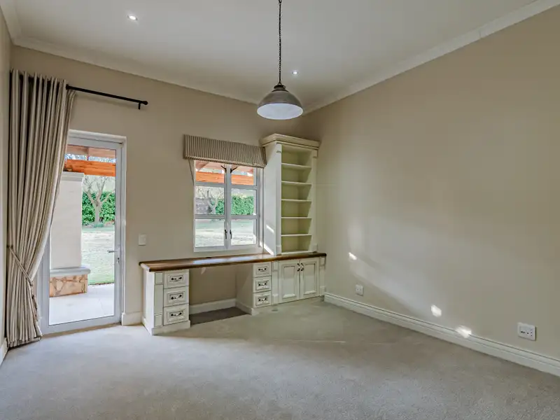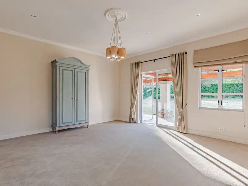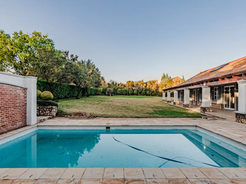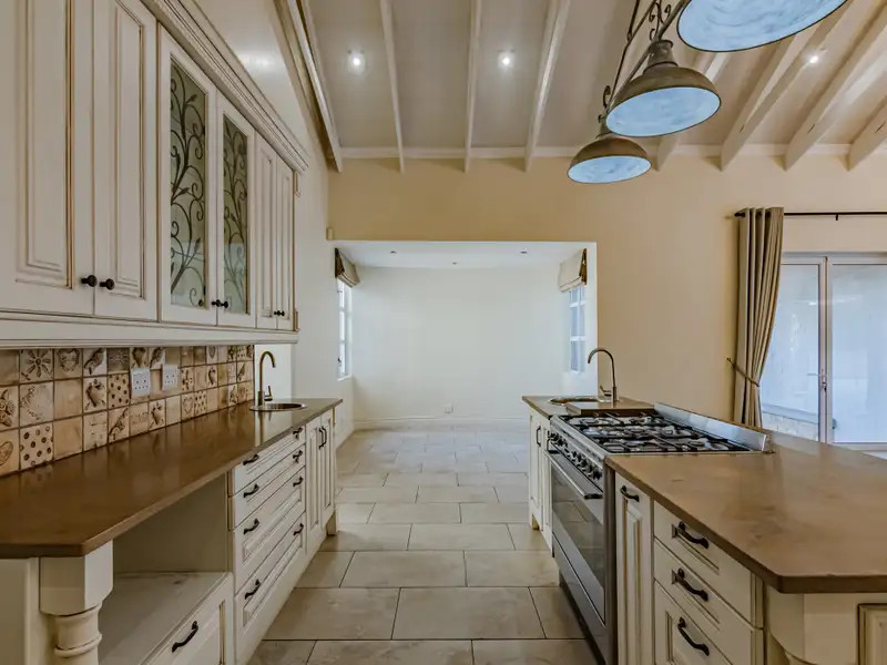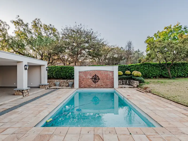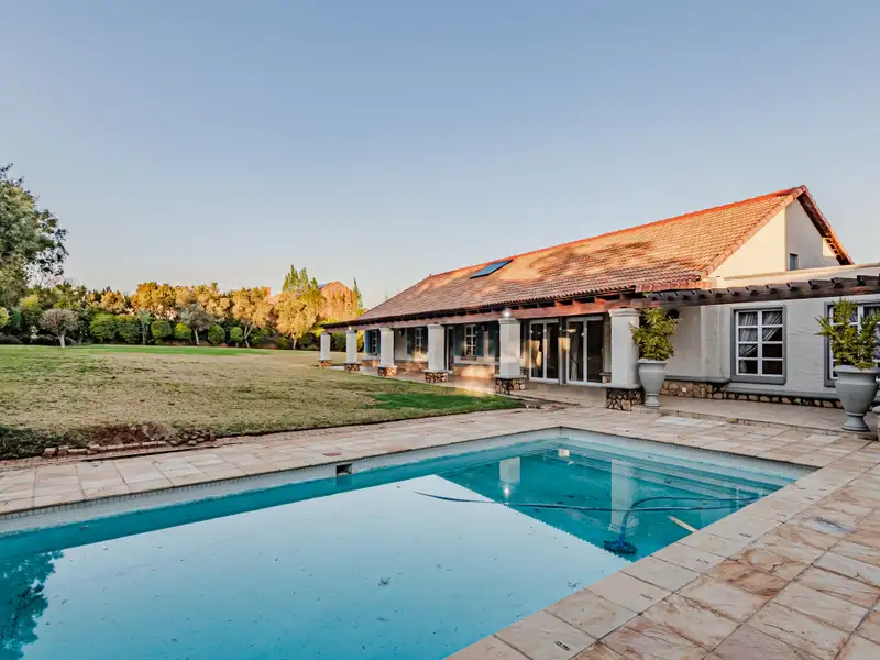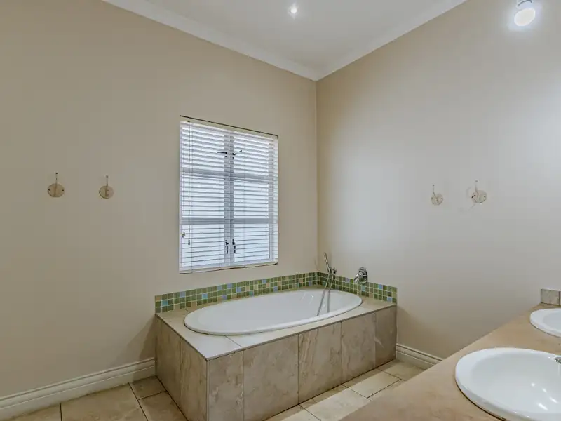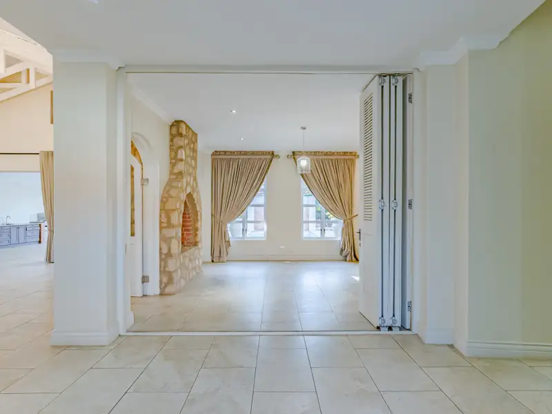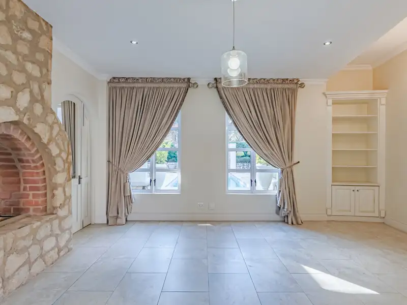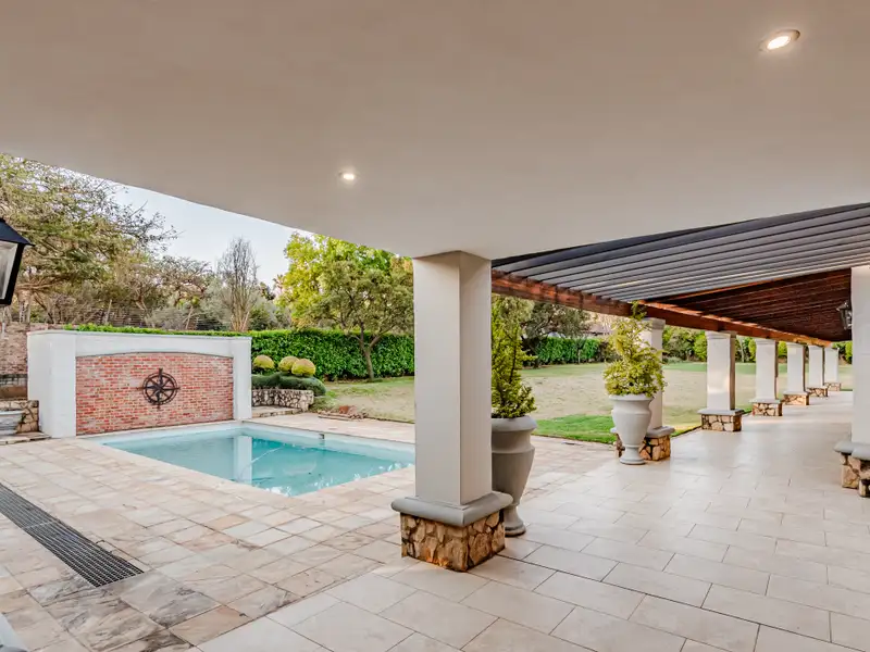 As you step into the welcoming entrance hall, the sophistication is immediately evident with marble floors leading the way to a formal lounge adorned with a cozy fireplace. the spacious open plan kitchen is a true chef's delight, complete with a separate laundry room and scullery. Designed for effortless flow, the kitchen opens seamlessly into a large living area with stacking doors that extend to a L-shaped entertainment patio, overlooking the sparkling pool and tranquil gardens.