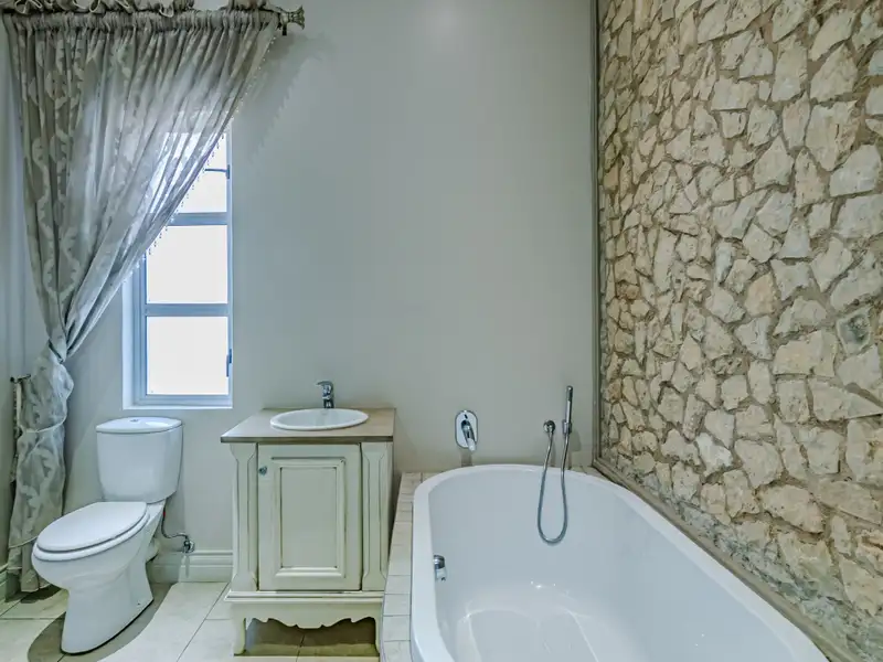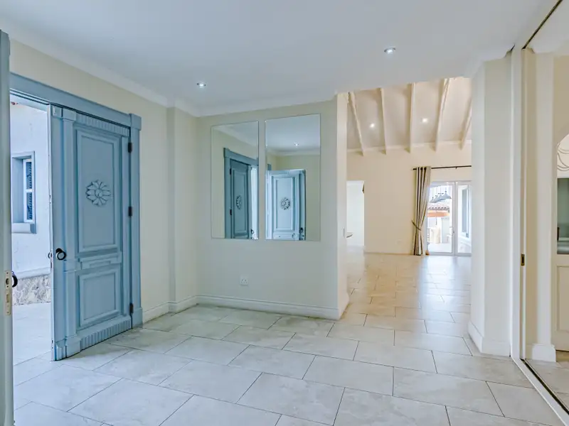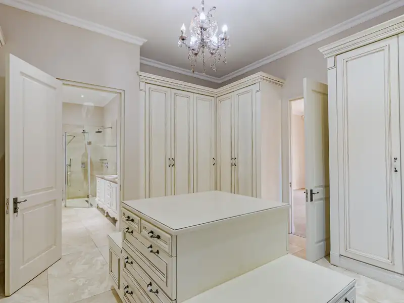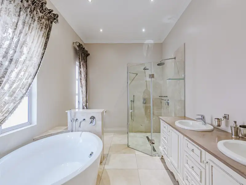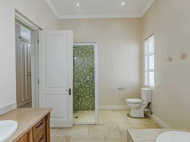 The home boasts 5 spacious bedrooms and 4 bathrooms, each finished with architectural detail and thoughtful design. All bedrooms feature underfloor heating and open onto the entertainment area, providing peaceful garden views. The master suite is a true retreat, fitted with luxurious finishes, a walk-in dressing area, and a spa-like bathroom with a freestanding bath.