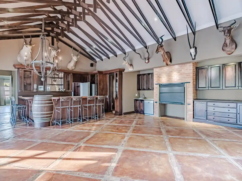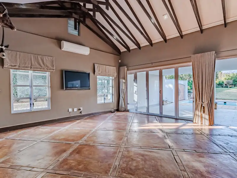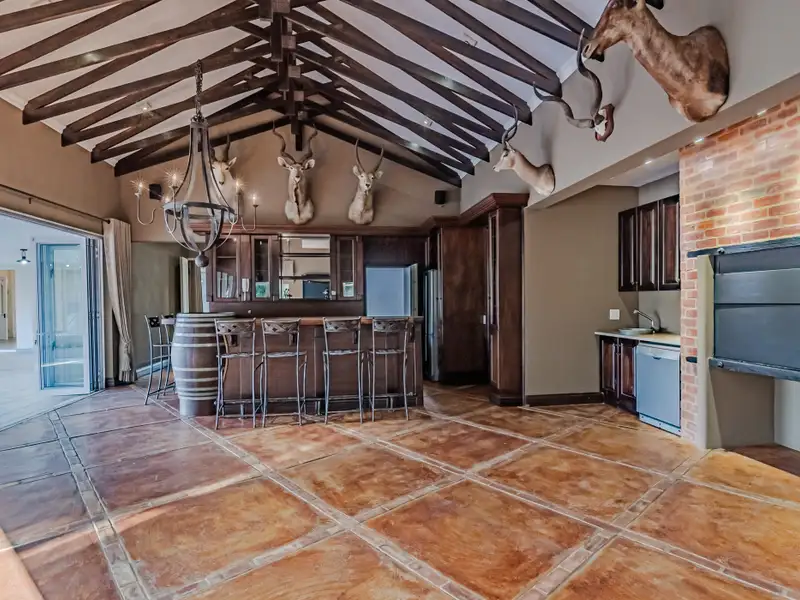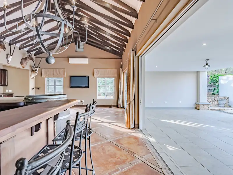 A separate TV lounge connects to the fully equipped bar and entertainment space, fitted with a built-in braai and guest toilet - ideal for hosting gatherings all year round