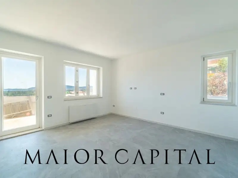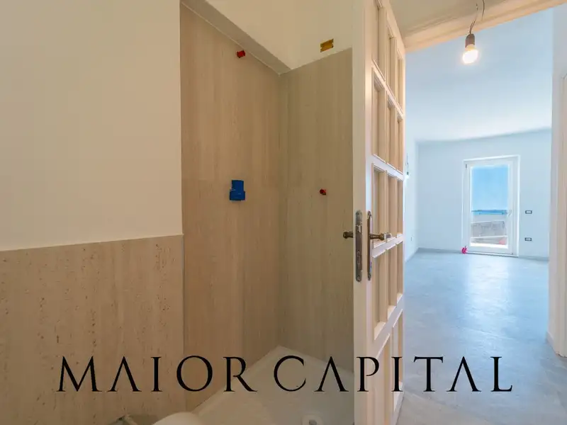 The upper floor, currently unfurnished, has been designed to host a living area with direct access to a panoramic veranda, a bedroom, and a second bathroom. From this level as well, you can enjoy a sea view that enhances the value of the property.