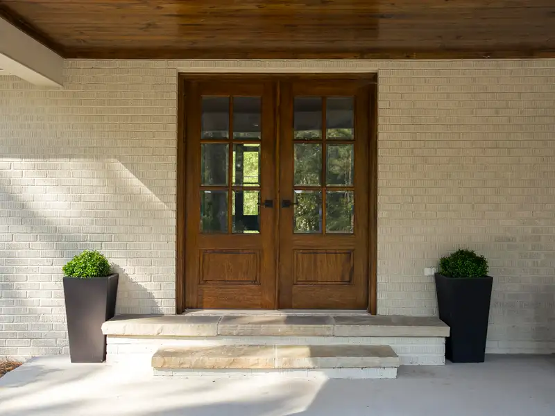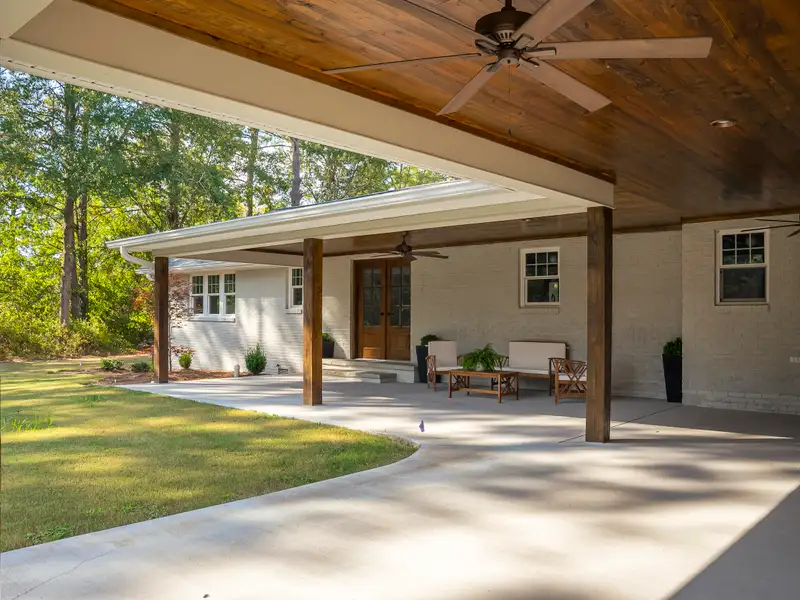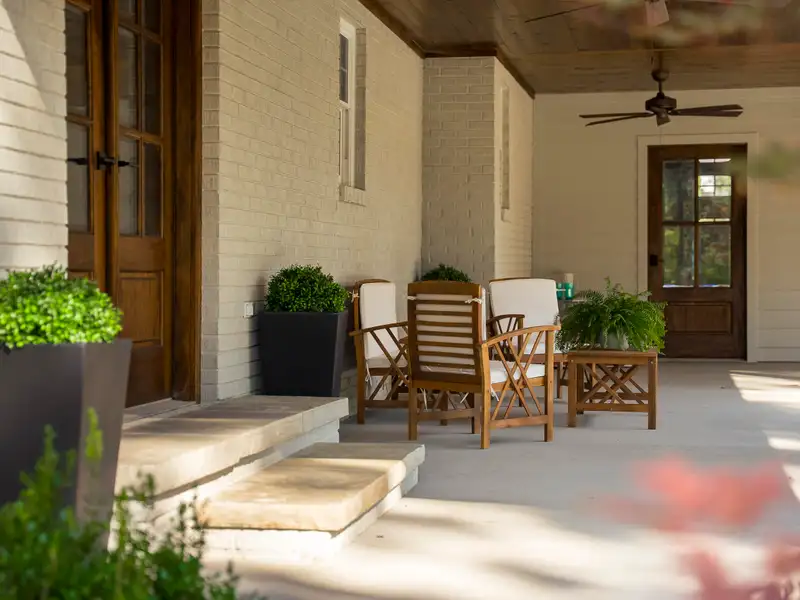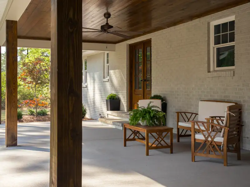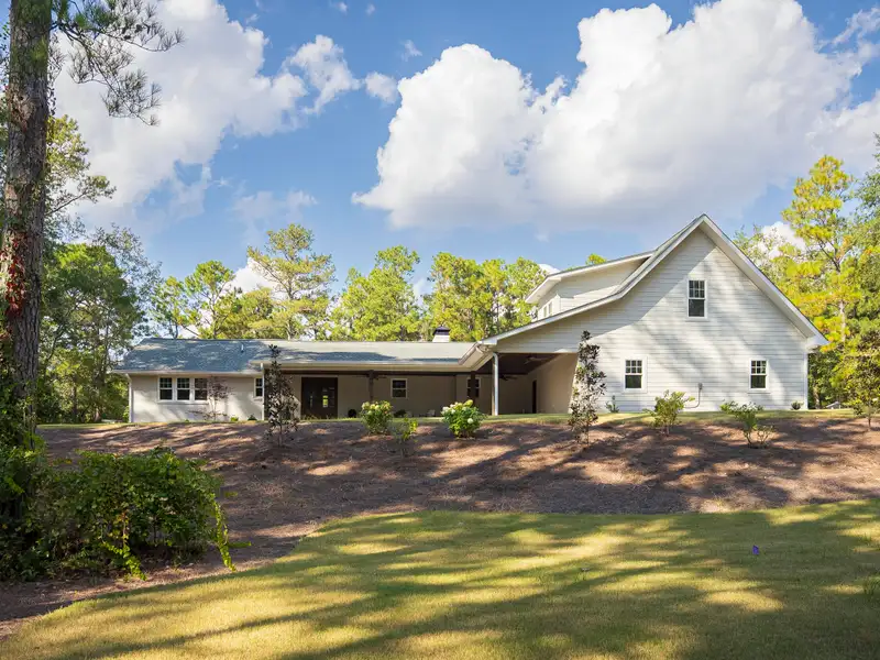 - Expansive covered outdoor porch with pineland views