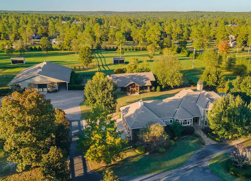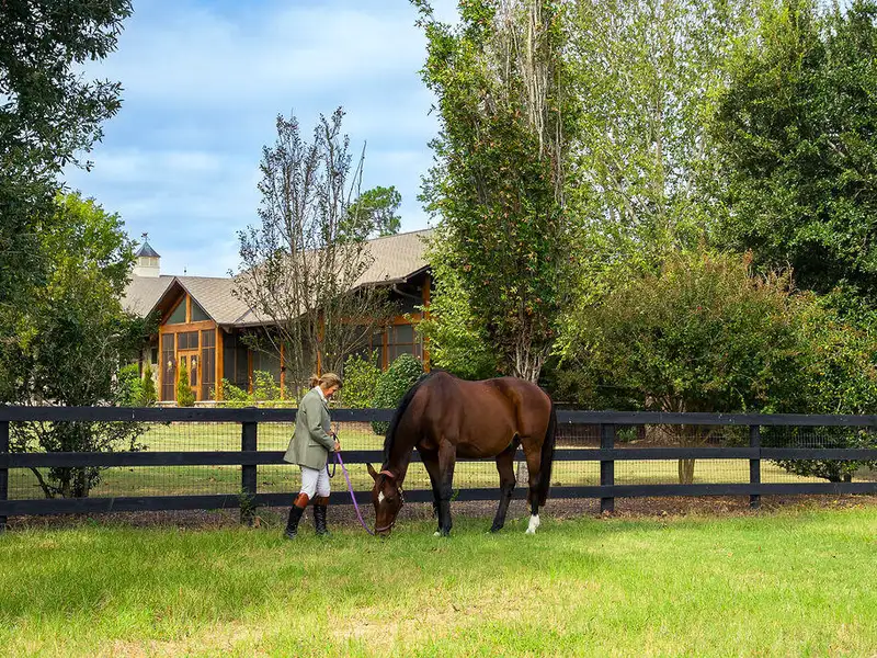 A gated entrance and magnolia-lined drive set the stage for the stunning, Tuscan-inspired residence, well-designed 4-stall stable with kennel, and the exquisite craftsmanship of the Serenity House, a separate venue for gathering, rejuvenating, and relaxing after a day on the trails.