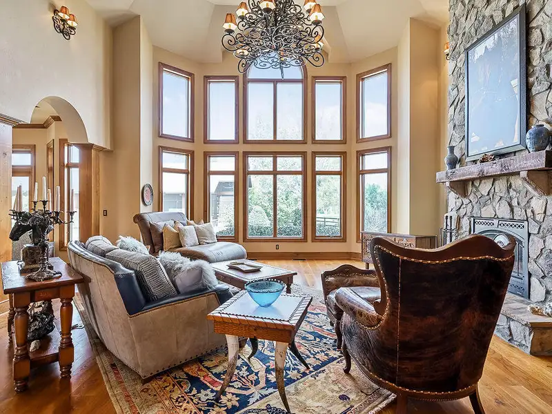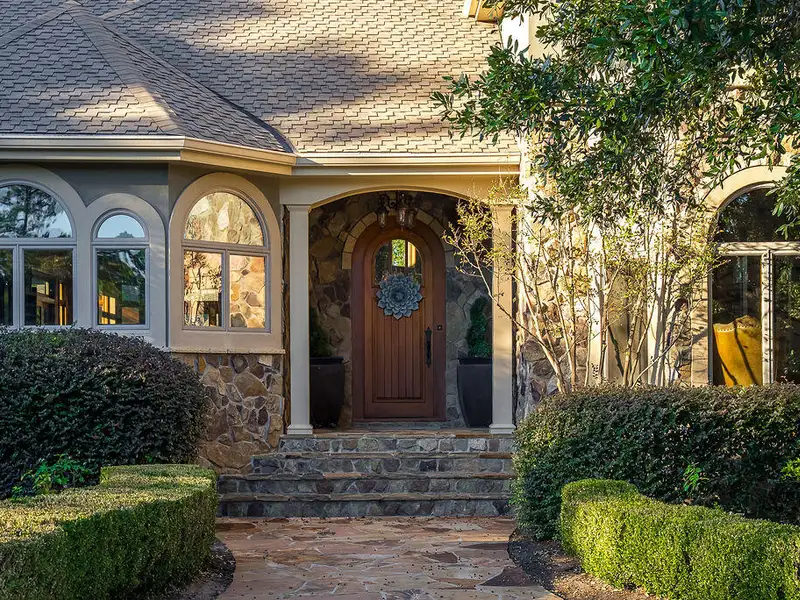The 2009 Grant Larlee-built home features a stucco & riverstone exterior and stunning living spaces, beautifully appointed with luxurious finishes and architectural accents, including European old-growth white oak wide-plank flooring, artisan lighting, and a dramatic 18-ft stone fireplace. The light-filled Great Room, Dining Room, and Keeping Room flow seamlessly for easy everyday living and entertaining.