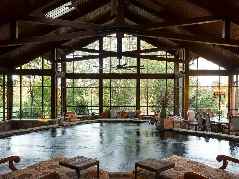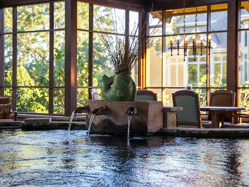 Looking for a signature place to relax and entertain? The estate at 1029 Shell Bluff includes an architectural jewel, that we call the Serenity House. This 2016 enclosure is rich in texture with wormy cypress interior walls, Birnam wood beams and copper screens. Designed by Cam Scott of CFS Architects, the Serenity House offers features that appeal to all the senses with multiple areas for gathering, relaxing, cooking & dining centered around a magnificent architectural koi pond and waterfall designed for resort-style tranquility.