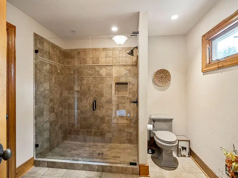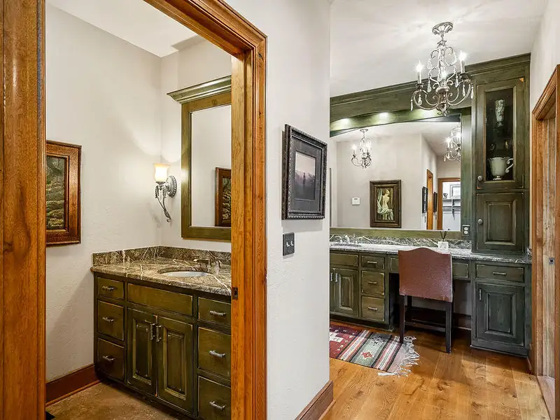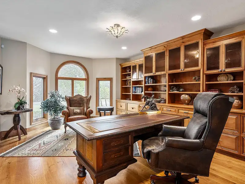 Additional highlights include a home office/library with built-ins, a stone accent wall with a cedar-shingled overhang, 2 generous upstairs guest bedrooms with private vanities, a walk-in cedar closet, a lovely main floor powder rm, a generous back-hall with coat/utility closets, laundry, and access to the 3-bay garage (nearly 12 ft. ceilings), and climate-controlled basement. A covered back porch is a welcoming place to take off your boots when coming inside from riding or attending to your dogs & horses.