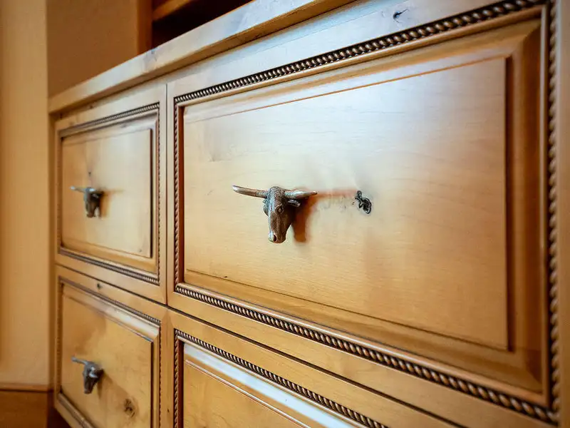 The showstopper kitchen is outfitted with handsome, knotty alder cabinetry, gorgeous granite counters and elite appliances including built-in SubZero refrigerator, Asko dishwasher, Wolf 6-burner gas range and Gaggenau steam and convection ovens. Stained glass doors open to a walk-in pantry, ideal for a coffee/espresso bar, in addition to storage.