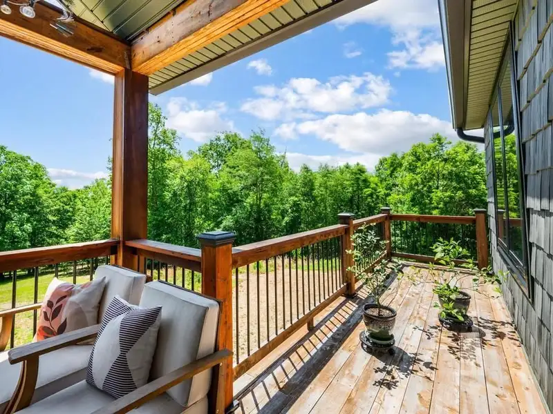 - Expansive cedar-covered porch