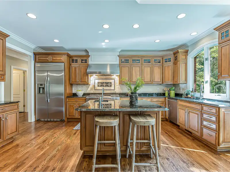 - Chef's kitchen with granite counters and island
