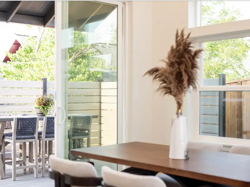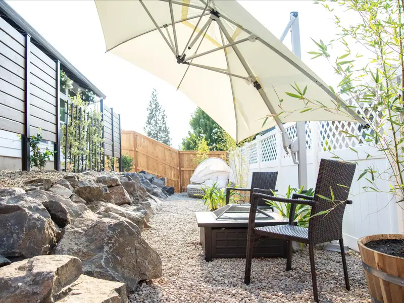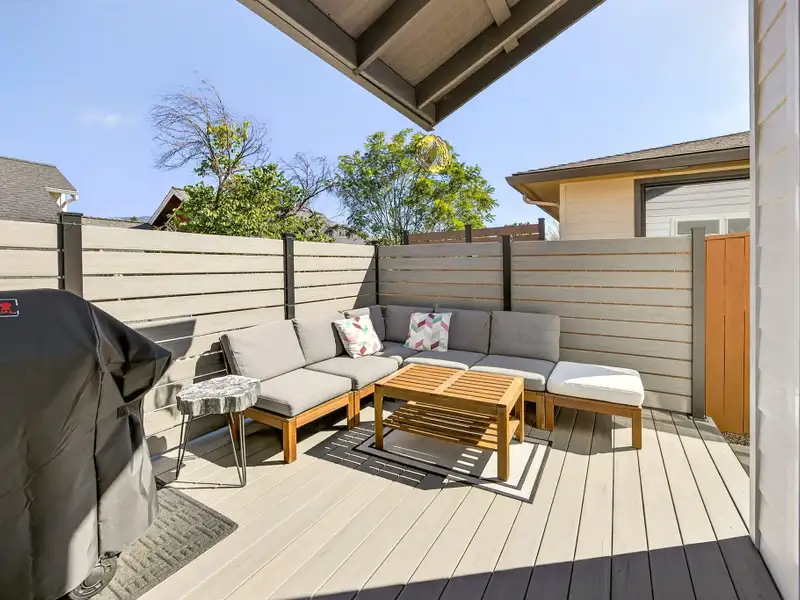 - Large private deck with low-maintenance landscaping