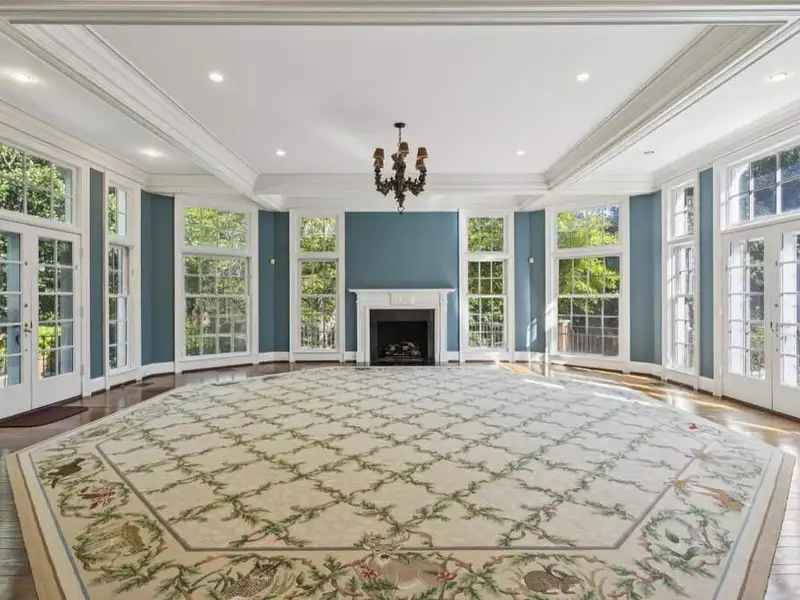 - Long private driveway with magnolia trees