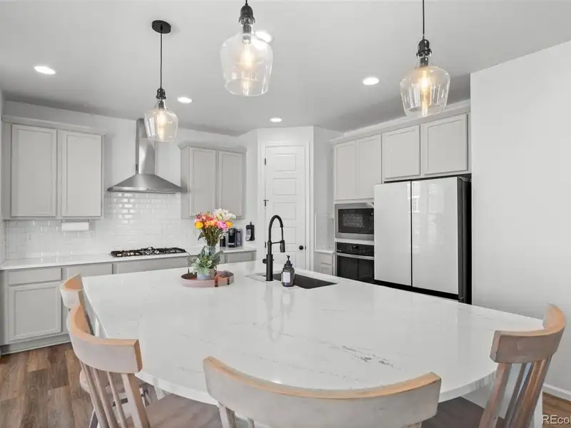 - Gourmet kitchen with quartz countertops