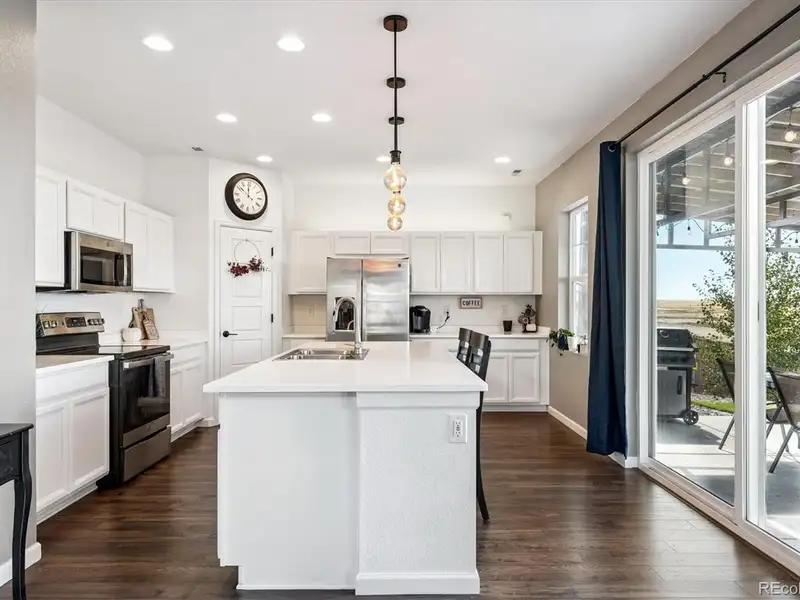 - Kitchen with GE appliances and walk-in pantry