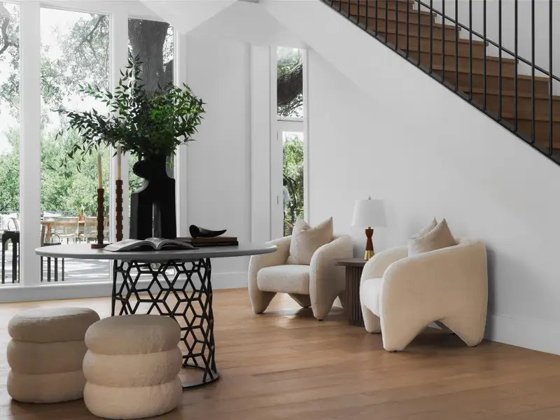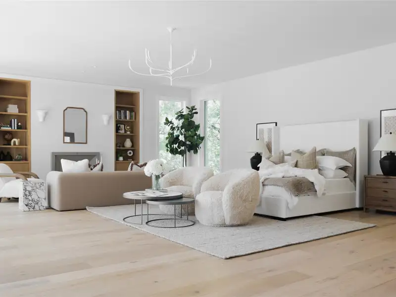 - High ceilings with wide-plank oak floors