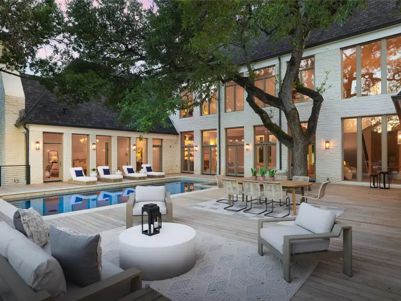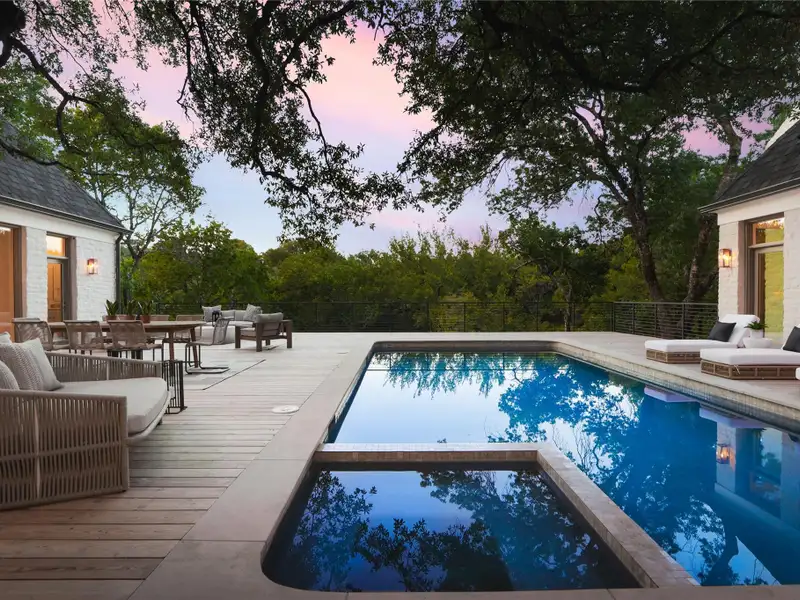 - Backyard with pool and lush privacy