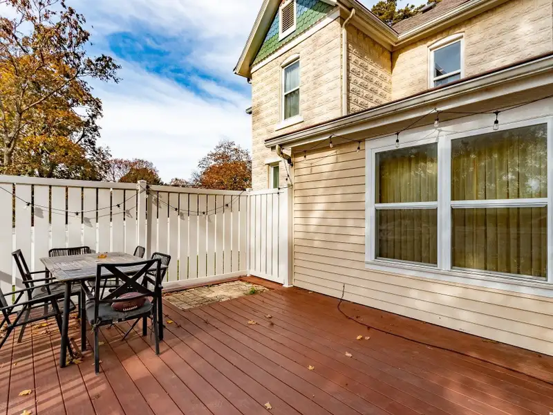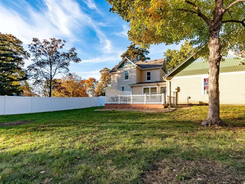 - Fenced backyard with deck