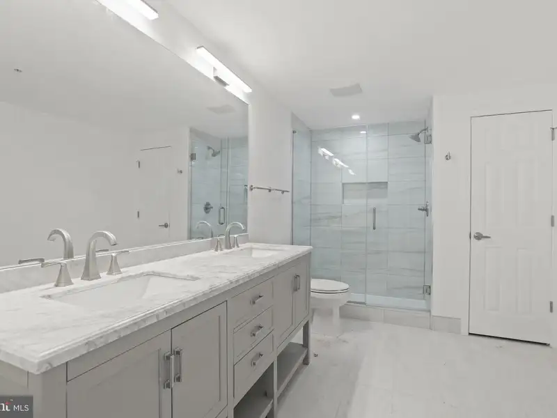 - Marble double sink in bath