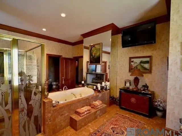 Unbelievable views! Located in the Country Club of Louisiana 11 ft above the cart path on the 14th Green over .73 acres with a 3 Acre view of the golf course. This one-of-a-kind residence, on a choice private lot, originally purchased from golf legend Jack Nicklaus, and thoughtfully designed with every detail in mind. Experience refined living in this beautifully custom-built one owner estate offering expansive interiors, timeless finishes, and exceptional amenities. Fabulous Imported slate flooring from Brazil sets a welcoming tone and flows seamlessly into the heart of the home. A spacious 800 SF kitchen and keeping area featuring hard tan brick floors, large work island, convenient butler's pantry, TV, and a Connecticut creek stone fireplace. The first-floor primary suite is a serene retreat, complete with a double-sided fireplace, marble-appointed bath, dual vanities with dressers, a heated Kohler dual bath, and a private exercise/dressing area, with half bath and private access to the back pool area. A second bedroom on the main level, currently used as an office or study, offers a brick accent wall and a full marble bath. On the second floor discover a large open hall leading to four bedrooms and three full baths, library shelving and reading area, plus a large game/playroom with a wet bar, pool table and access to the 57 foot balcony. The third level is dedicated to a fully equipped media room with a private bath and a stage. The kitchen, keeping, living room, dining room, and primary suite all have sweeping views of the golf course and wildlife preserve. The exterior of this home is equally exceptional, featuring hard tan bricks with keystones, spacious lanai overlooking the large pool and spa area, two separate double garages one fully air conditioned, a large motor court circular drive, mature landscaping, a powerful 60kW Katolight whole-house generator, and custom-crafted wood storm panels for windows and doors