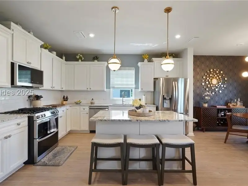 - Gas double oven and kitchen island
