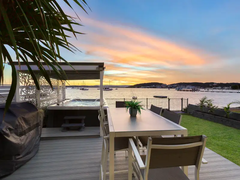 There's waterfront living, and then there's this. Set right on the shores of Lake Macquarie with panoramic water views and direct lake access, this rare offering delivers an unbeatable front-row lifestyle with every luxury in place. Drop your kayak or tinnie straight from the backyard and cruise into the day. Host friends on the balcony as the sunset melts behind Mount Sugarloaf. Watch the Airshow or Float Your Boat festival glide by from your private deck, or unwind in the 9-person swim spa as yachts cruise past. With a walk-to-everything location and a layout designed for family living or dual-income flexibility, this is a property that turns heads and ticks every box.