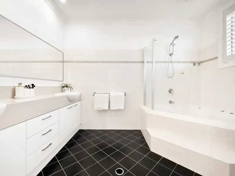 - Tastefully appointed bathroom with corner spa bath, shower and dual vanity