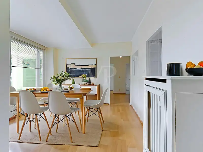 This charming top-floor apartment (5th floor) can be easily reached by elevator. It is located in a well-kept apartment building from 1969 and, with approx. 130 m² of living space, offers a spacious and comfortable home in the immediate vicinity of Kurfürstendamm.