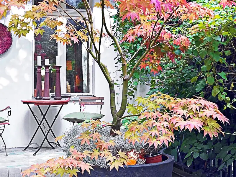 A terrace leads from the living area to the garden, which is covered with high-quality Cotto Etrusko tiles and offers an ideal place for sociable evenings with a view of the greenery. Here you can relax at the end of the day while enjoying the view of the carefully maintained outdoor areas.