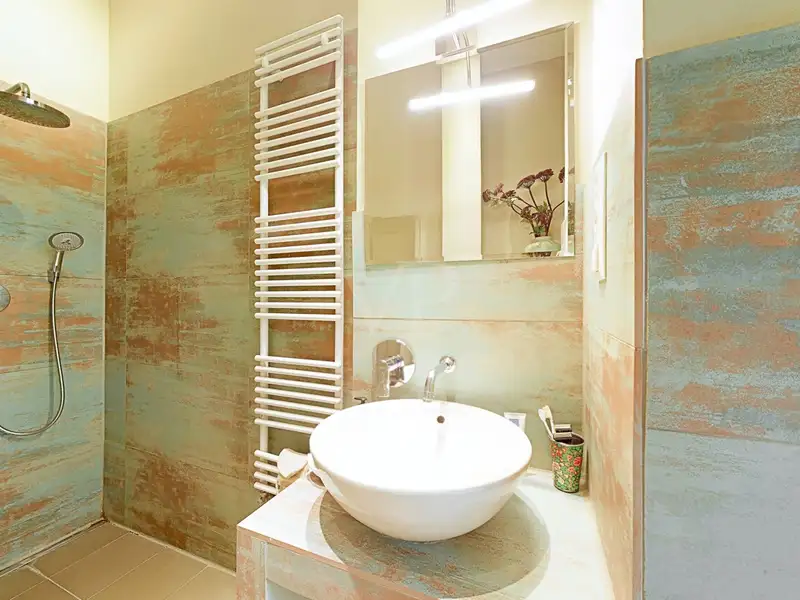 The kitchen is a real eye-catcher, characterized by its historic kitchen fittings, including an original cooking machine, which preserves the charm of times gone by. At the same time, modern electrical appliances and practical work surfaces offer contemporary convenience.