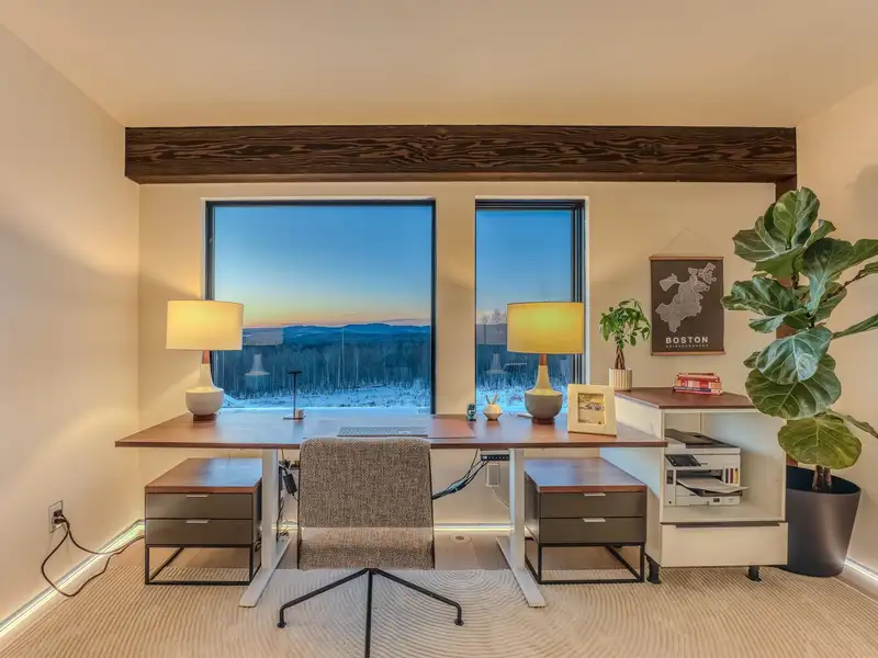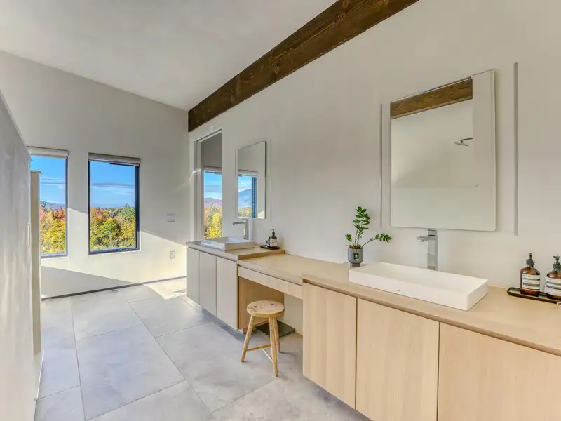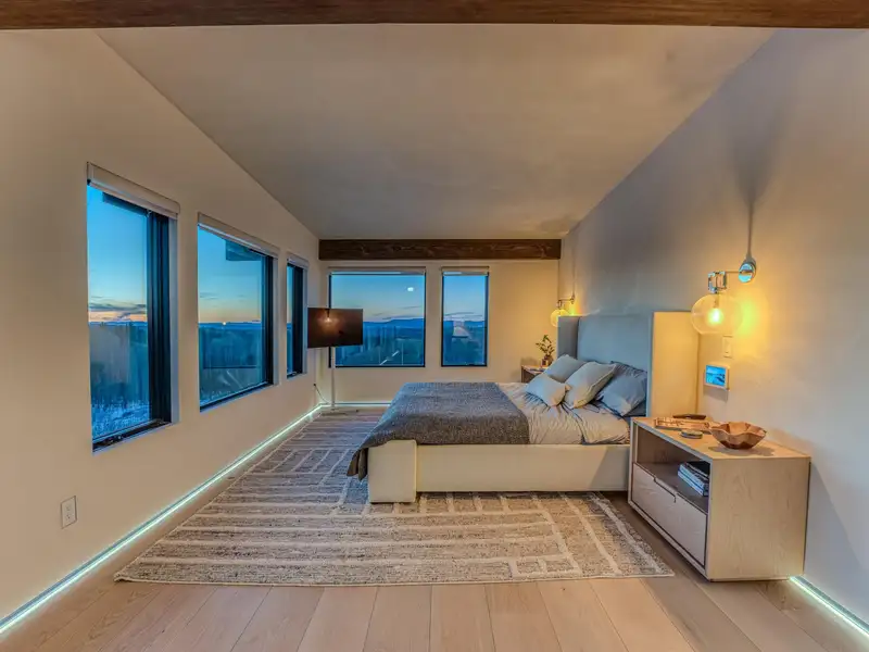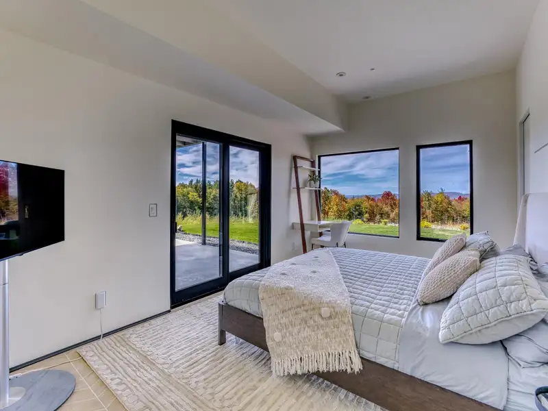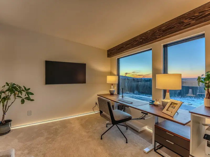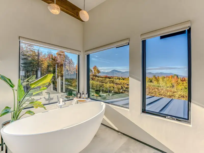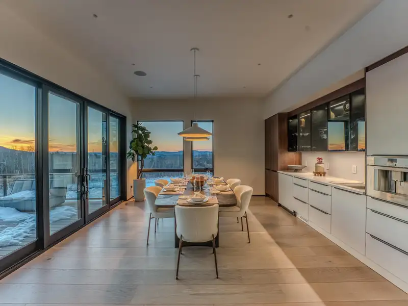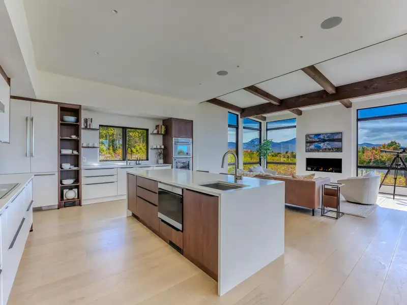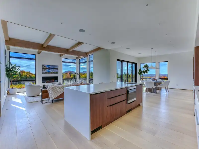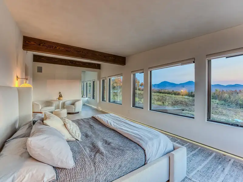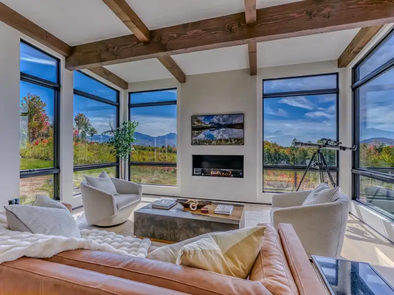 - Large picture windows with mountain views
