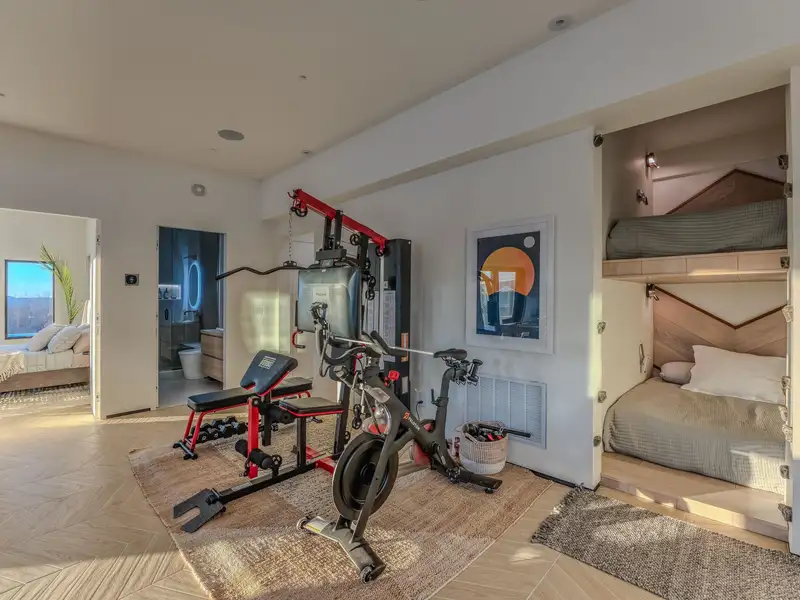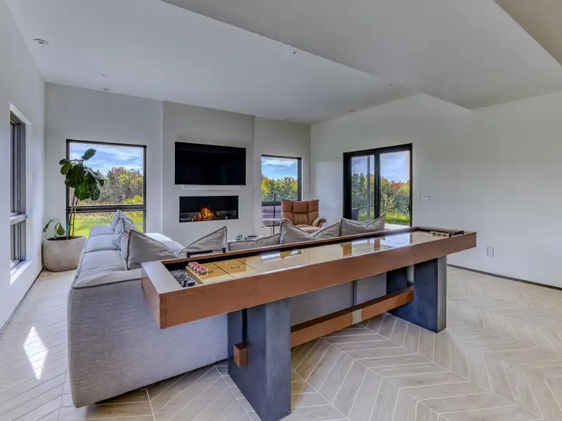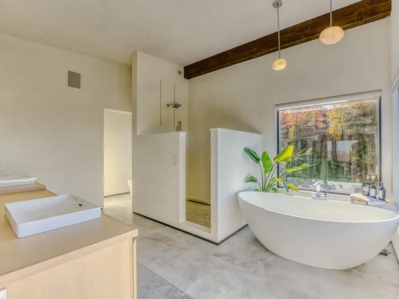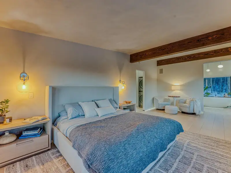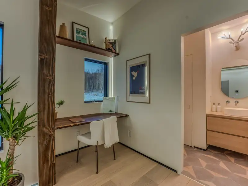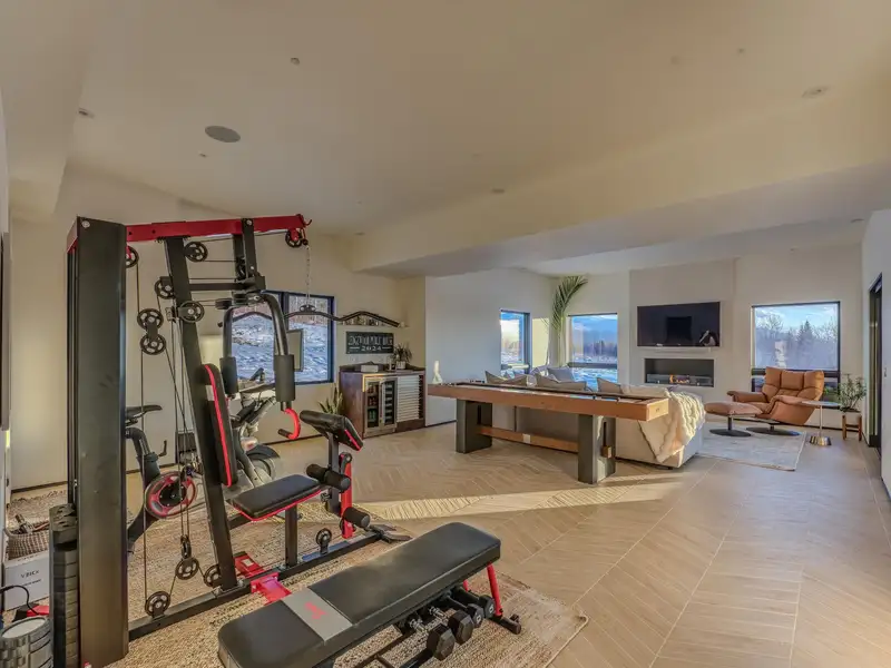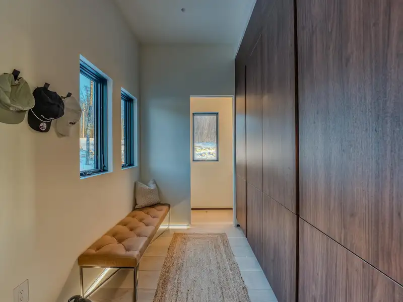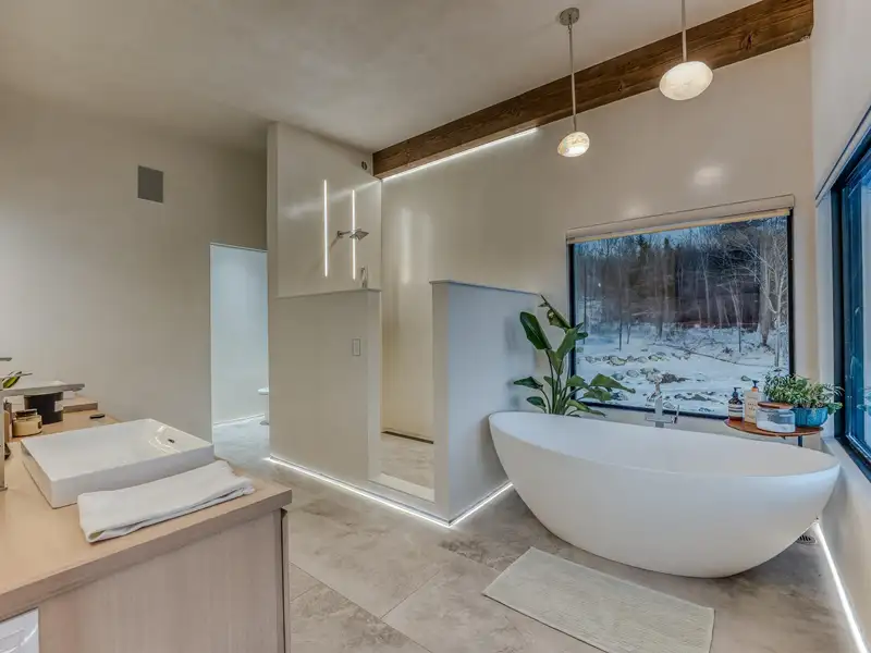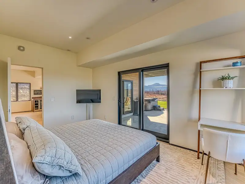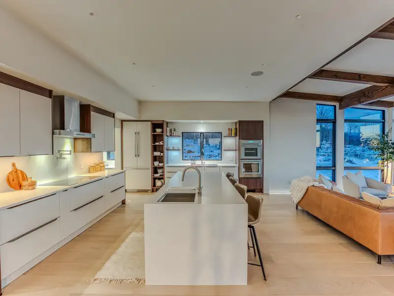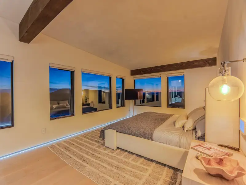 - Large picture windows with mountain views
