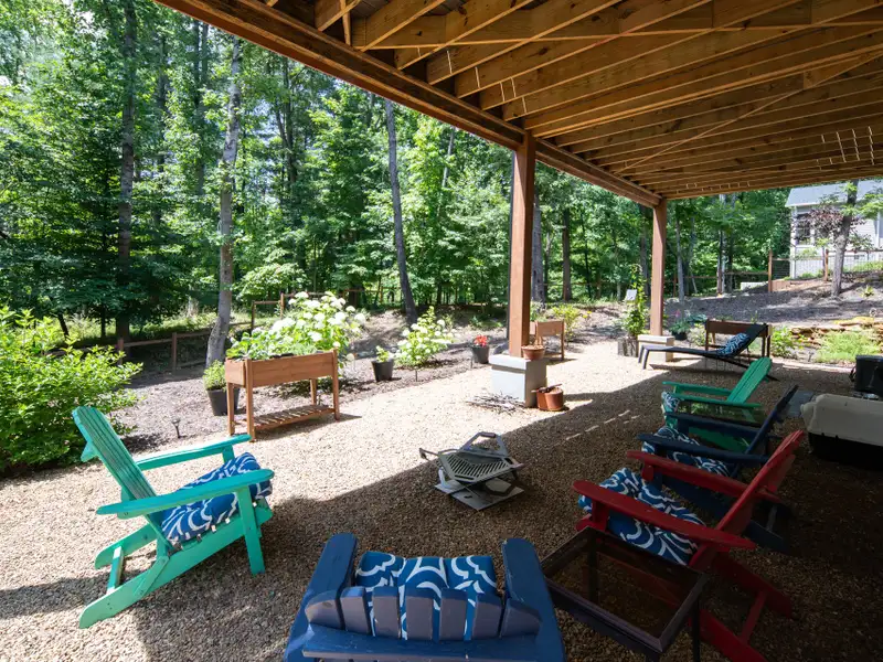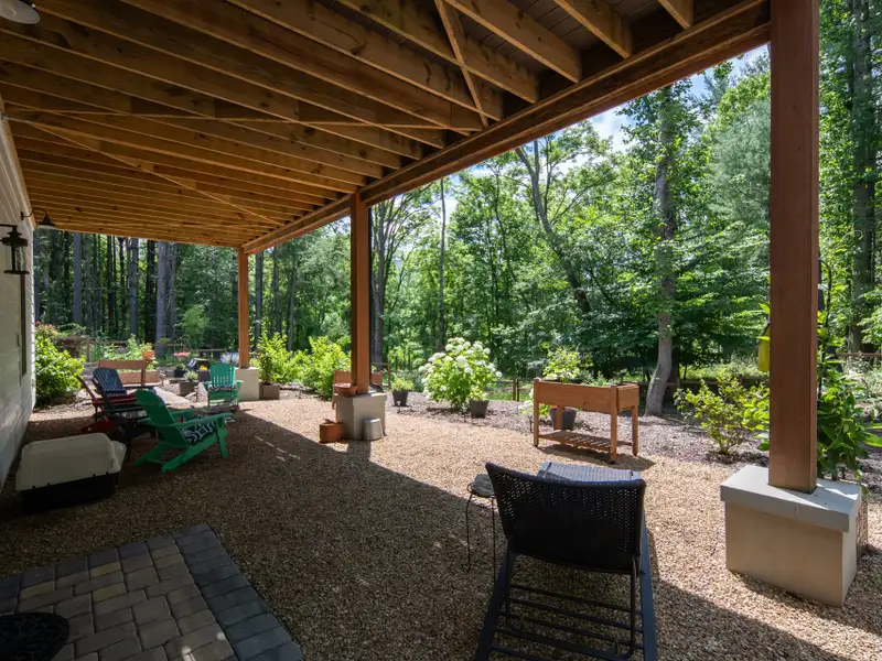 - Expansive rear porch with fireplace