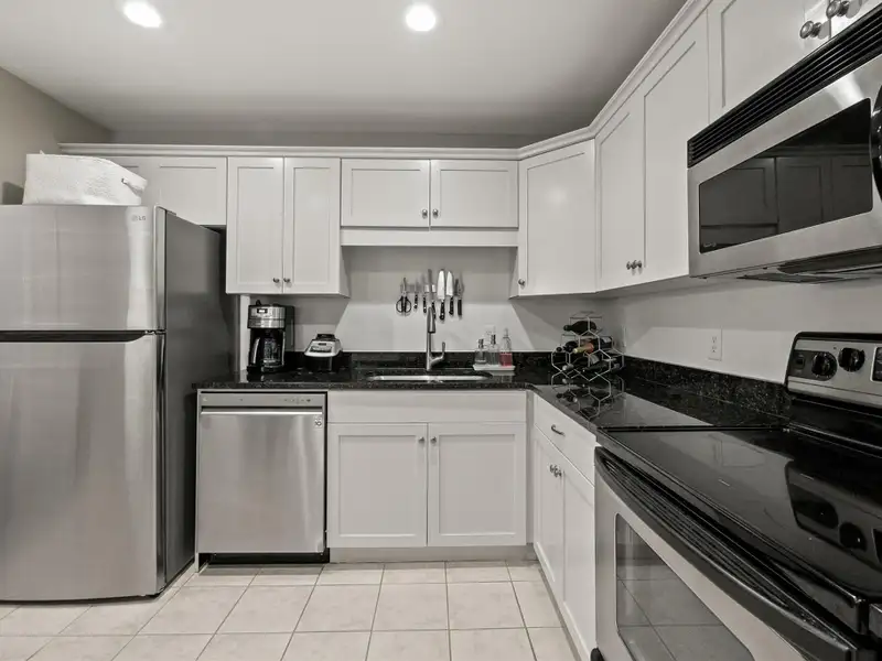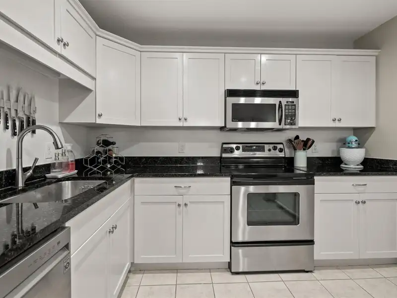 - Updated white kitchen with stainless steel appliances