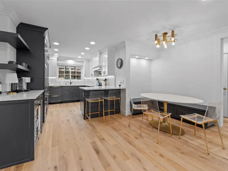 - Solid white oak matte wood flooring throughout