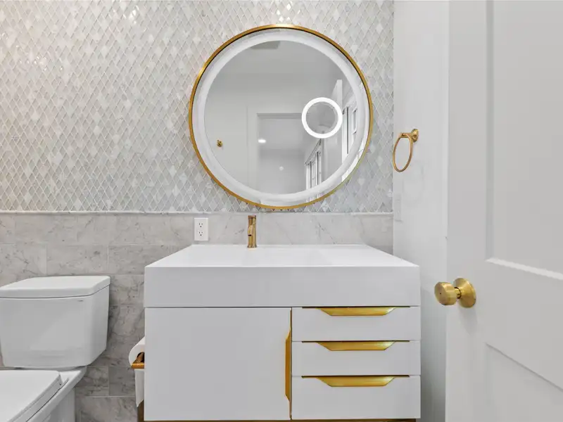 - Renovated bathrooms with marble tile and lighted mirrors