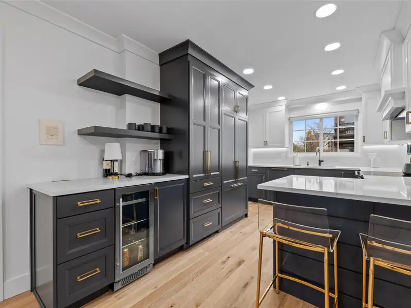 - Calacatta quartz kitchen counters and backsplash
