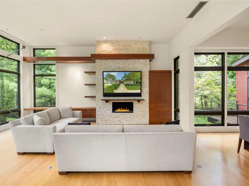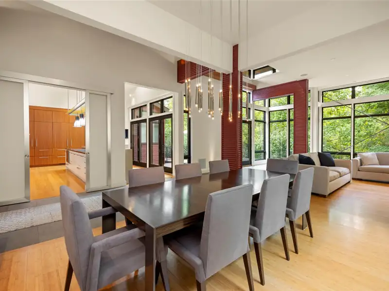 - Floor-to-ceiling windows with lush views