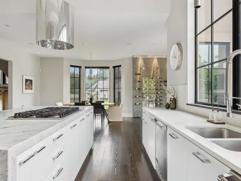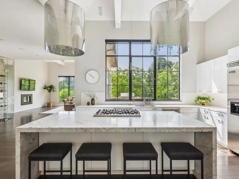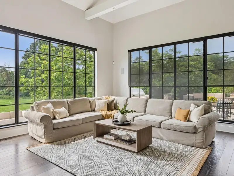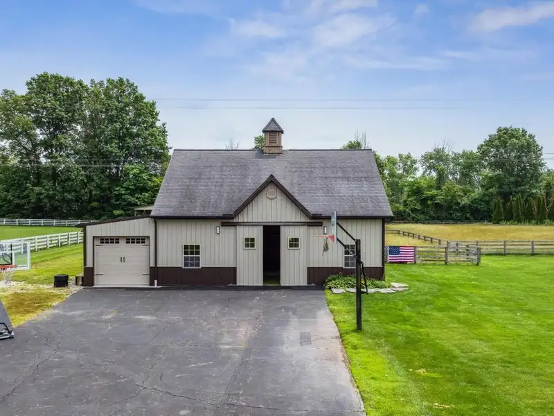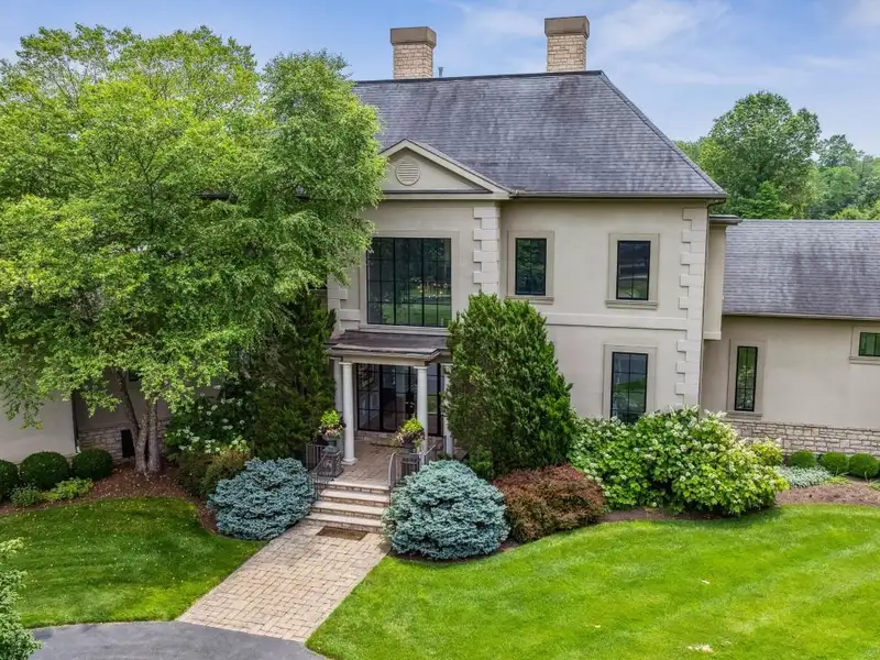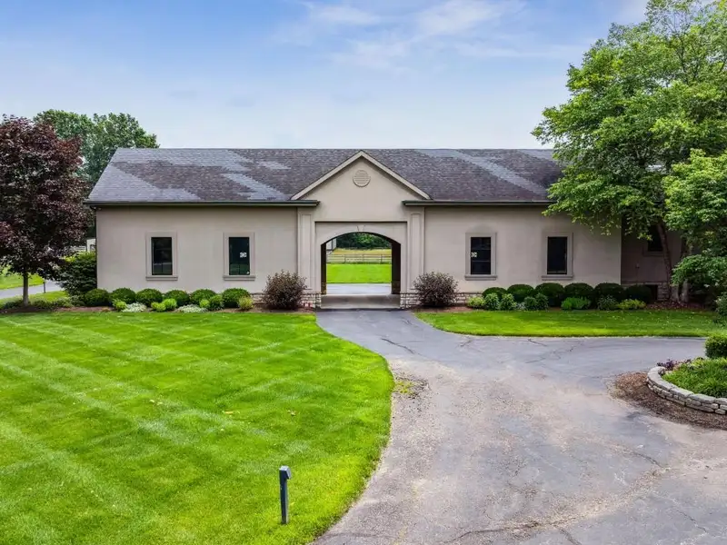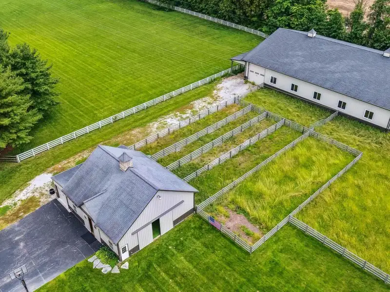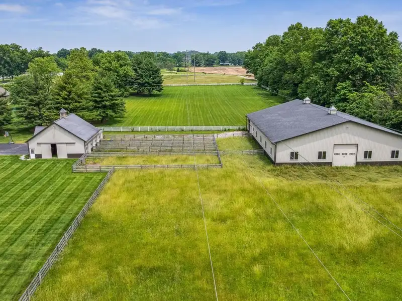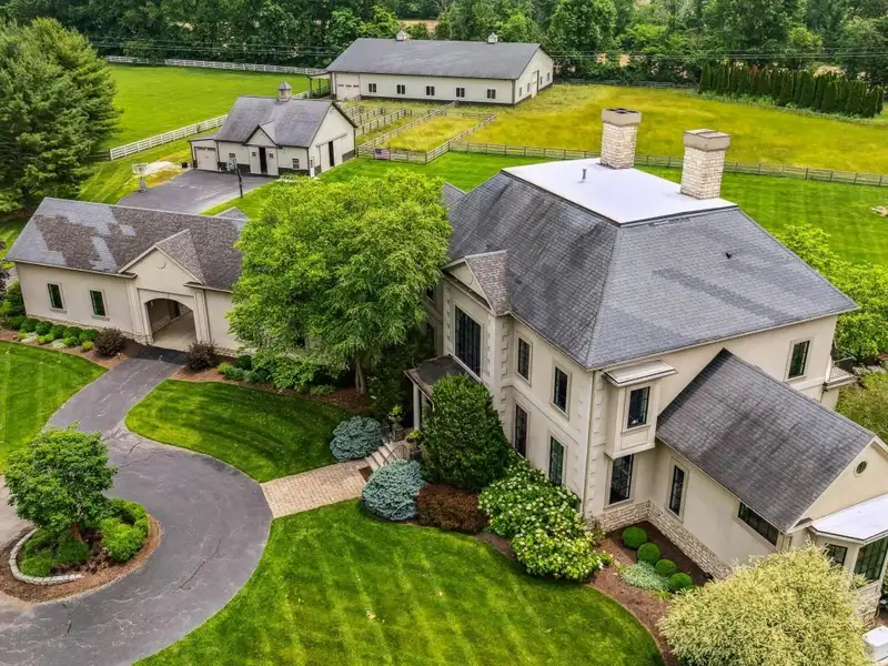 Experience luxurious living in a beautifully updated custom home on 6.1 pristine acres of peaceful countryside which includes a beautiful, stocked pond. With striking Hope's custom steel windows, smart home Control4 integration, and stunning Carlisle ash wood floors, every detail has been thoughtfully curated. Ceilings are exceptionally high and the floorplan is open and flooded with natural sunlight. A main-floor owner's suite offers sweeping views, spa-like bath, and a generous closet while the 2nd level offers 3 family bedroom suites-all large with excellent closets. Enjoy a fully finished lower level with fitness and media rooms plus a full guest suite. The kitchen is a work of Italian craftsmanship with marble, quartz, Viking appliances, a huge island and custom temperature-controlled glass encased wine display. This home was designed for entertaining in style including 3 outdoor spaces that include a large, screened room. Also included are 4 oversized garage spaces, the original 4 horse barn has been casually converted to a party space while maintaining the stalls, hay loft, tack room and wash bay offering exciting potential as a guest house or poolside retreat. And to cap it off, the 80 X 100 radiant heated arena with state-of-the-art footing is ready for your horses but could easily house a fabulous car collection! See A2A remarks.