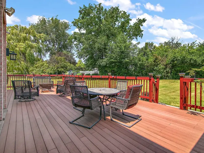 - Large deck overlooking private, tree-lined yard