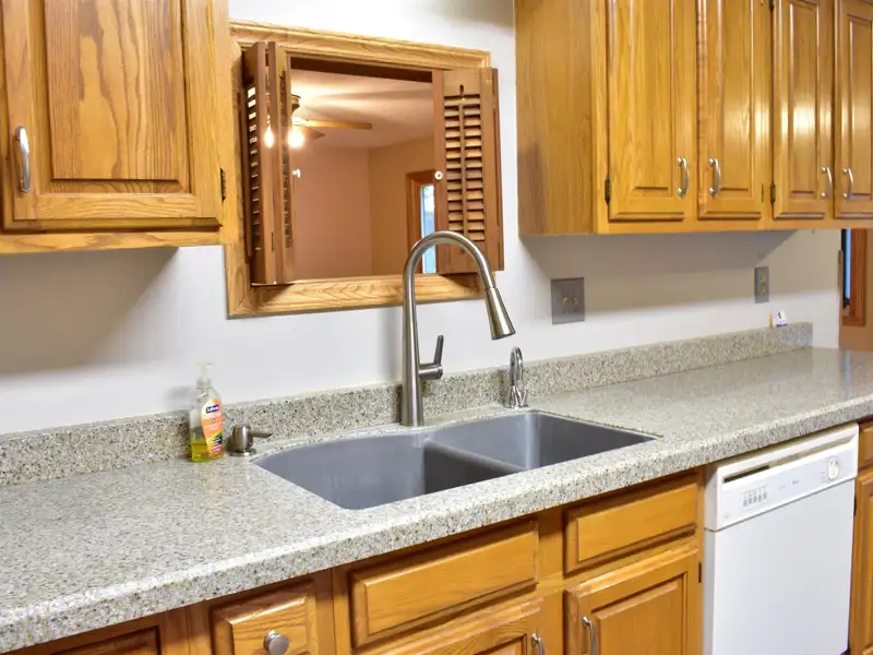 - Eat-in kitchen with oak cabinets, granite