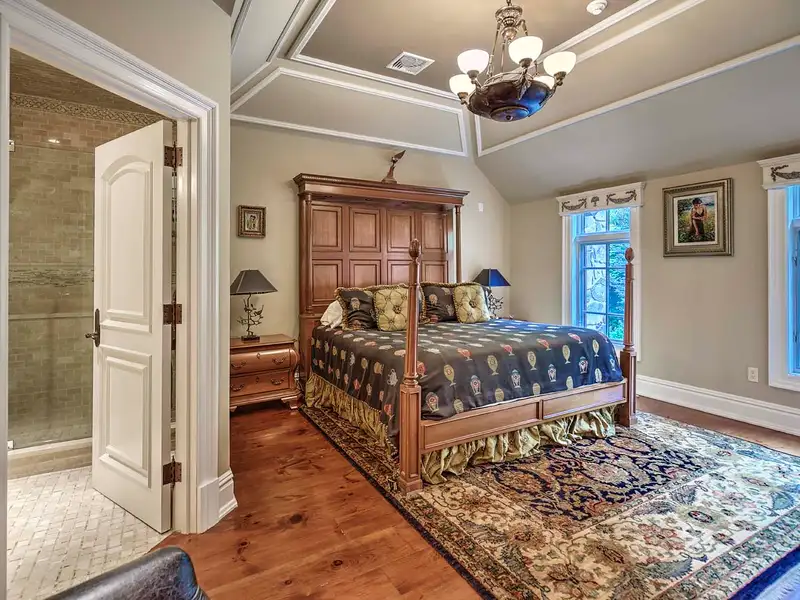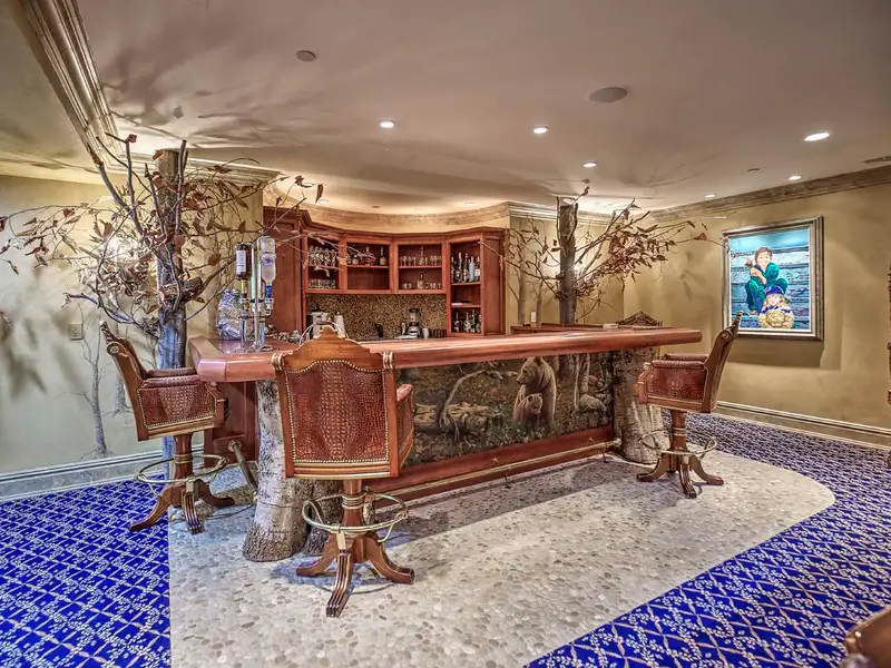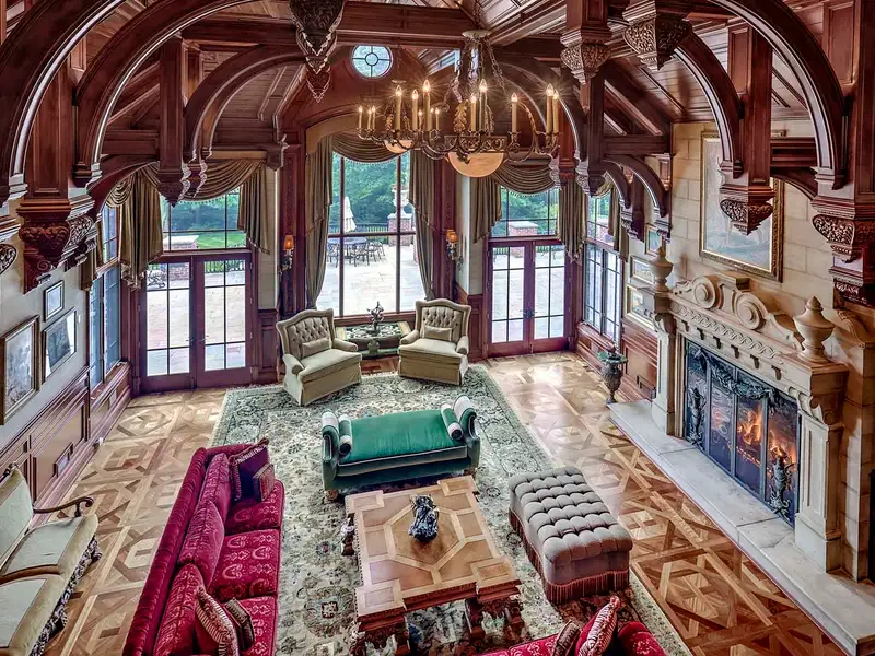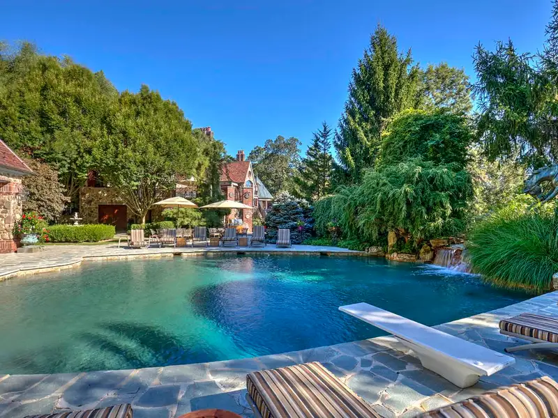 Kestrel Ridge: A home of extraordinary quality and space sits very privately on a hillside outside the village of Pottersville in Chester Township, enjoying the passive recreation benefits of neighboring Hacklebarney Park. A gated entry leads to a courtyard edged by a waterfall and maturely landscaped grounds. The meticulously crafted stone exterior and handsome hand-carved wood features inside lend a European hunting manor style to the home. Architectural blueprints and tax records show over 12,000 square-feet of space on three levels. Throughout the interior, expansive rooms with high ceilings are brightened with walls of windows providing views of the private grounds and hillsides beyond. An impressive two-story entry hall opens to an equally inspiring great room with a massive stone fireplace. Overlooking each of these rooms, and accessed by a gracious staircase, is a significant landing with a domed ceiling crowning the entry area. Occupying one entire end of the first floor, the primary bedroom suite includes a sitting room/office; bedroom with fireplace; exercise room; spacious double closet rooms and double full baths. A library/office nearby is highlighted by a stone fireplace wall. The dining room and kitchen with double islands are designed for entertaining on a generous scale with amenities for a master chef. An adjoining octagonal breakfast room with fireplace overlooks and adjoins the sprawling stone terrace spanning the back of the home, providing expansive space to dine al fresco. Adjoining the kitchen hall, a comfortable den with fireplace is the perfect place to relax. The second floor is dedicated to three individually-designed secondary bedroom suites, two with fireplaces and all with ensuite baths. A laundry on this level is matched by the main laundry on the first floor. Leading from the back stairs, a charming three-room apartment was custom-designed to provide notably comfortable space and independent living accommodations. A spectacular lower level is largely dedicated to entertainment and recreation with an award-winning 22-seat home theater; inviting bar area; a family/media room with fireplace; and a game room. Behind beautifully carved wooden doors, a wine cellar stands ready for memorable gatherings. A hallway leads to a guest suite, utility and storage rooms and ultimately to a sizeable hobby/gift wrapping room which provides a quiet creative space. Completing the resort-like facilities at Kestrel Ridge is the sequestered pool complex which features a stunning free-form gunite pool with waterfall and ample stone terrace; a stone pool house with kitchen, dining area, laundry, separate bath and sauna; and an outdoor barbecue area. The meticulous custom construction is equaled by the accommodations, which combine to provide a unique place to thrive.