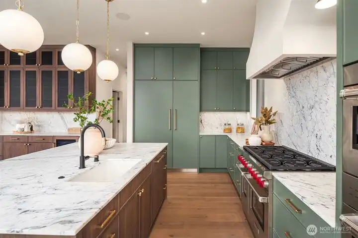 - Chef’s kitchen with marble and Subzero/Wolf appliances