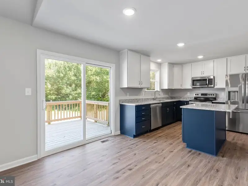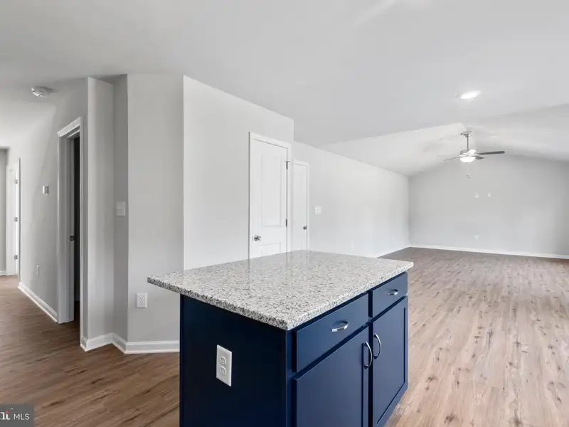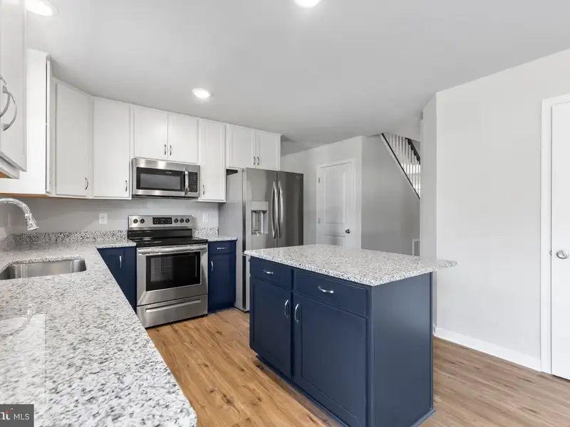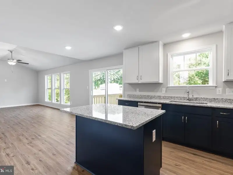 - Kitchen with island and granite countertops