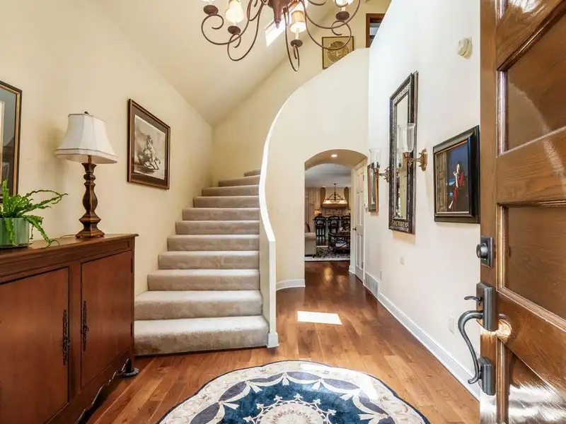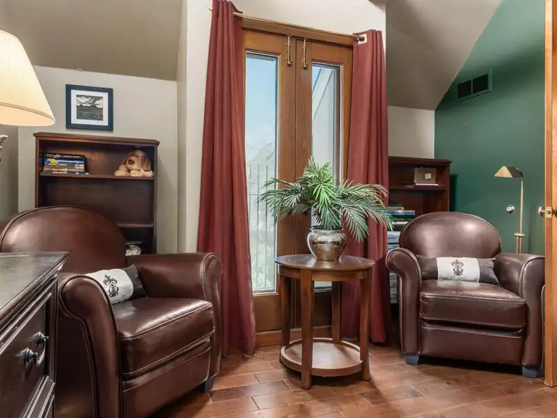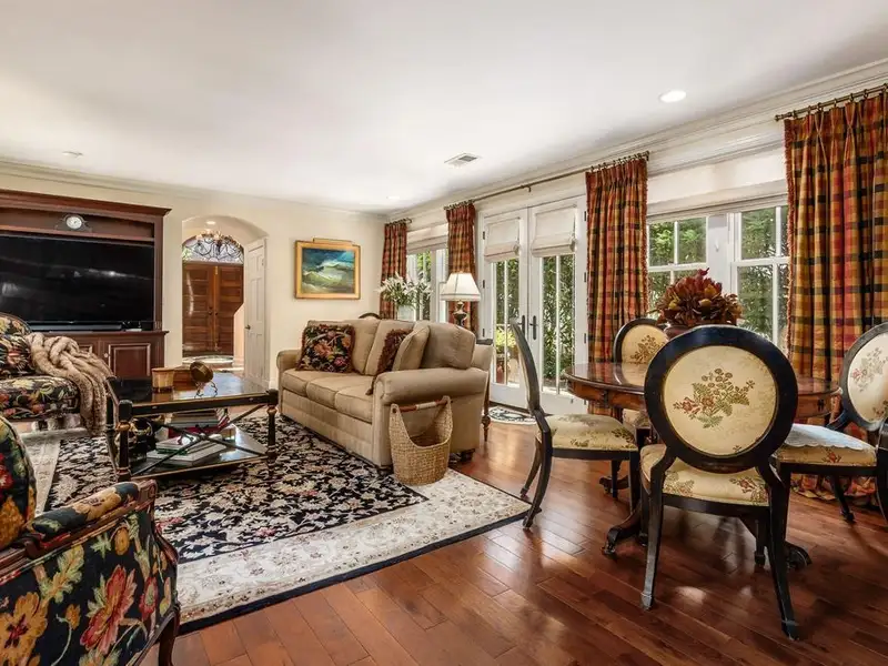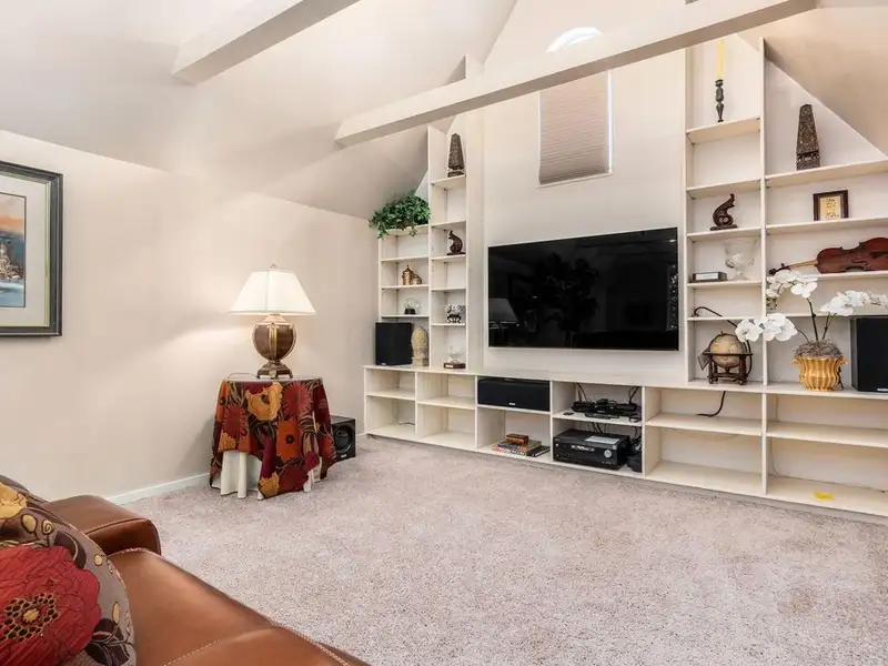 - Media room with dual staircase access