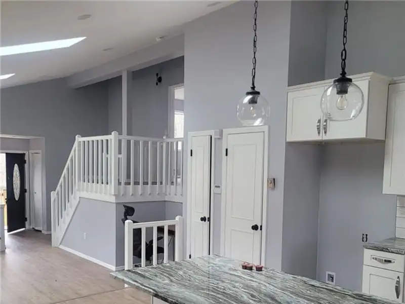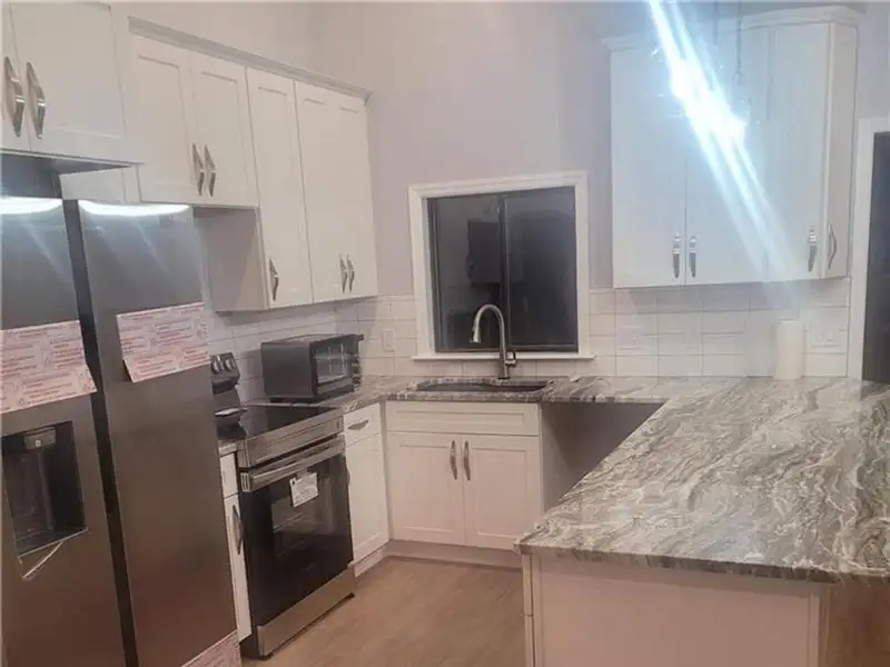 - Granite countertops in kitchen
